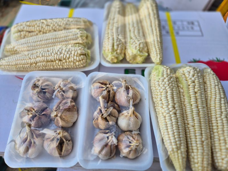1.비니루 잔손보기(남편과 인력) 2.집게 손보기 3.금산농협로컬 농산물 진열 시작