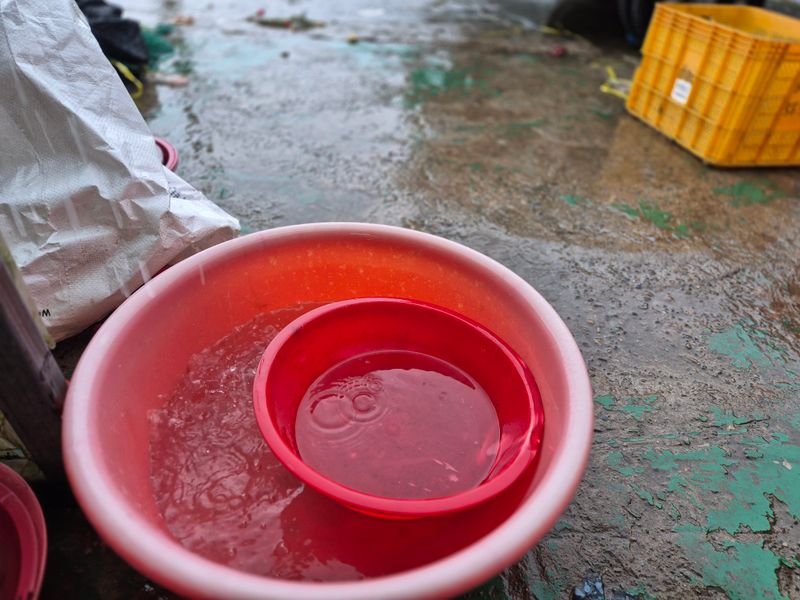 1,차염산으로 드리퍼 청소 2,물로 씻어 내고 있는중