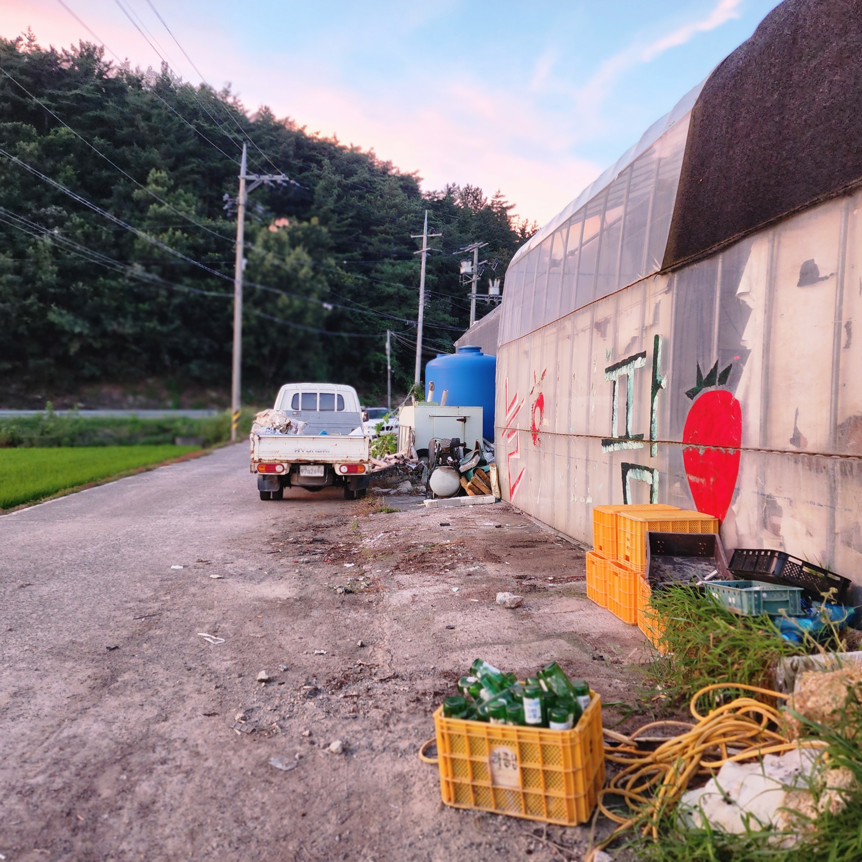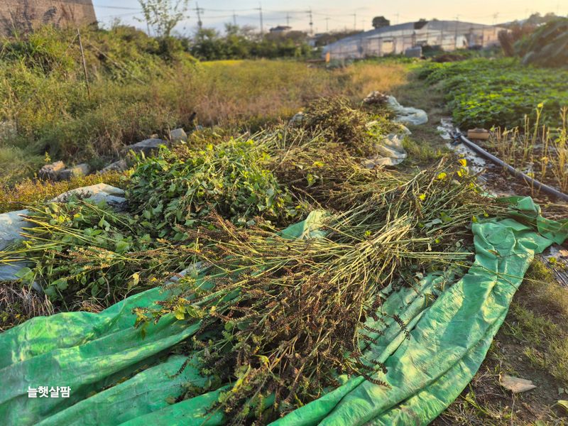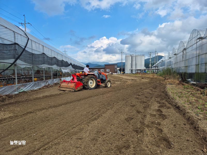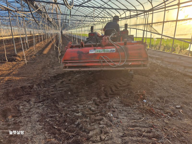 1,잡초 제거와 청소 2,양액3톤 탐 3,묵은 논 트렉터로 잡초 제거