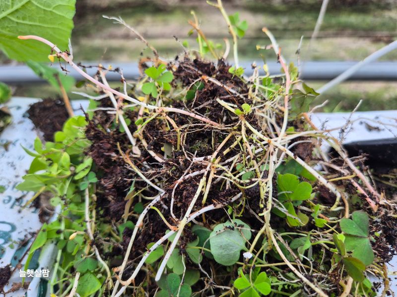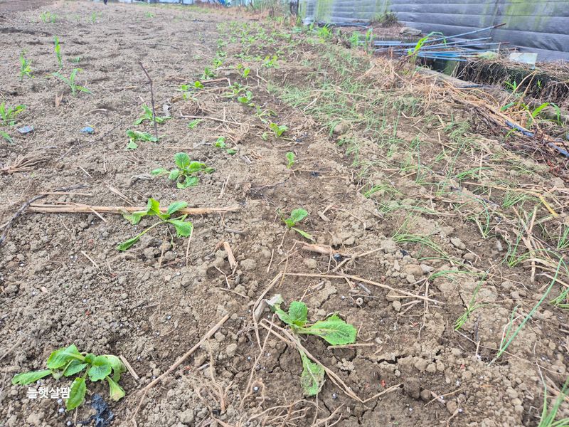 흐림 환기창 손보기 통로 잡초 뽑기 피망모종 물주기 텃밭 트렉트 작업