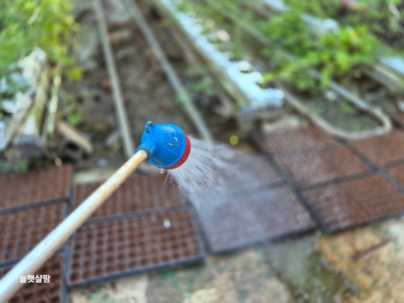 1,태풍 카눈 하우스 물 담수 2,파프리카 모종 밖으로 3,양액으로 저면관수 4,농약살포(프리엔,캡틴,알티라,써스펜스) 5,하우스바닥 락스 두말 뿌림