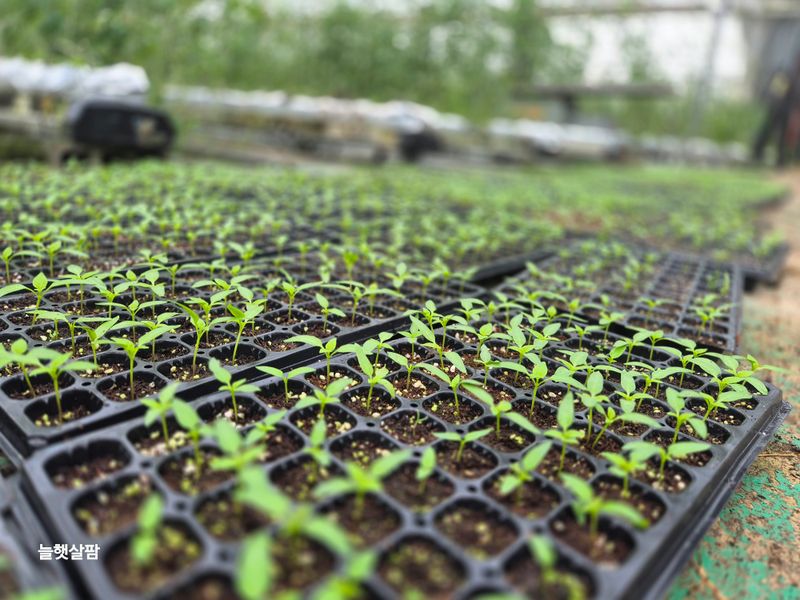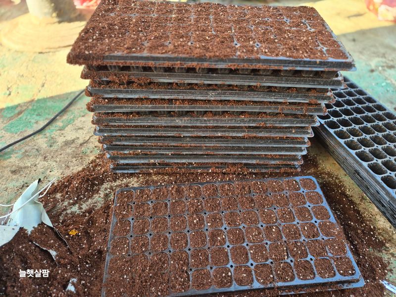 맑음 피망 재파종 준비를 한다 50구 폿트에 하려는 남자 몰래 72구폿트에 상토를 채워 보았다 하루 볕의 차이를 논하는 말처럼 3판은 피망 씨앗을 묻었다 잘 나서 잘 자라 주길 간절히 바란다