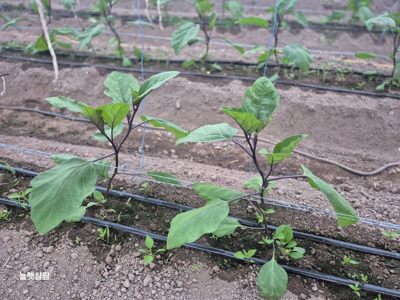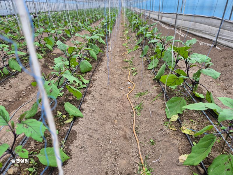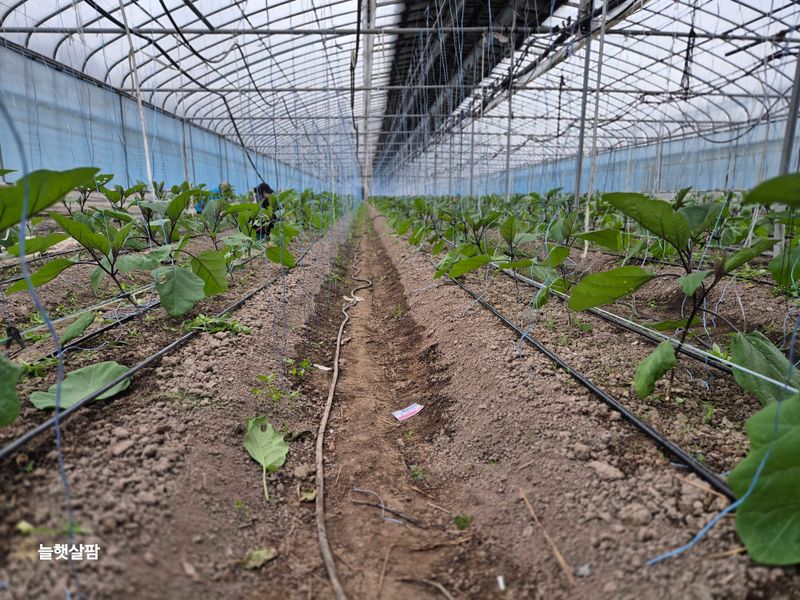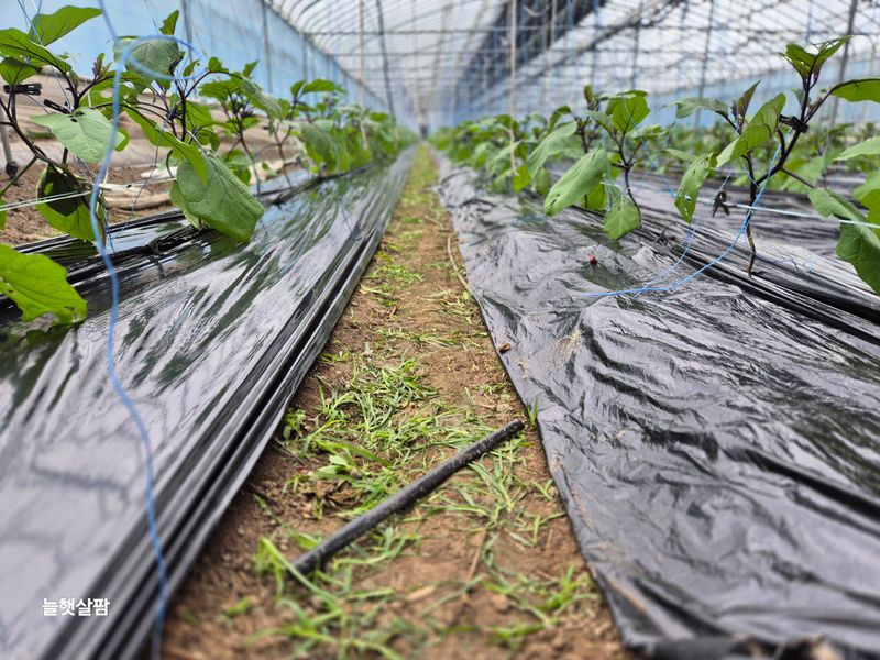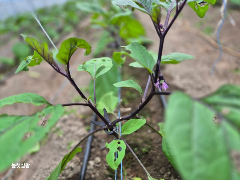 하루 종일 비 가지. 하우스 멀칭 하기 가지 나무 벌레. 많음 약을 처서 질식해 죽어야 하나? 잡아서 죽사발 만들어야 하나? 농부랑 숨바꼭질 중