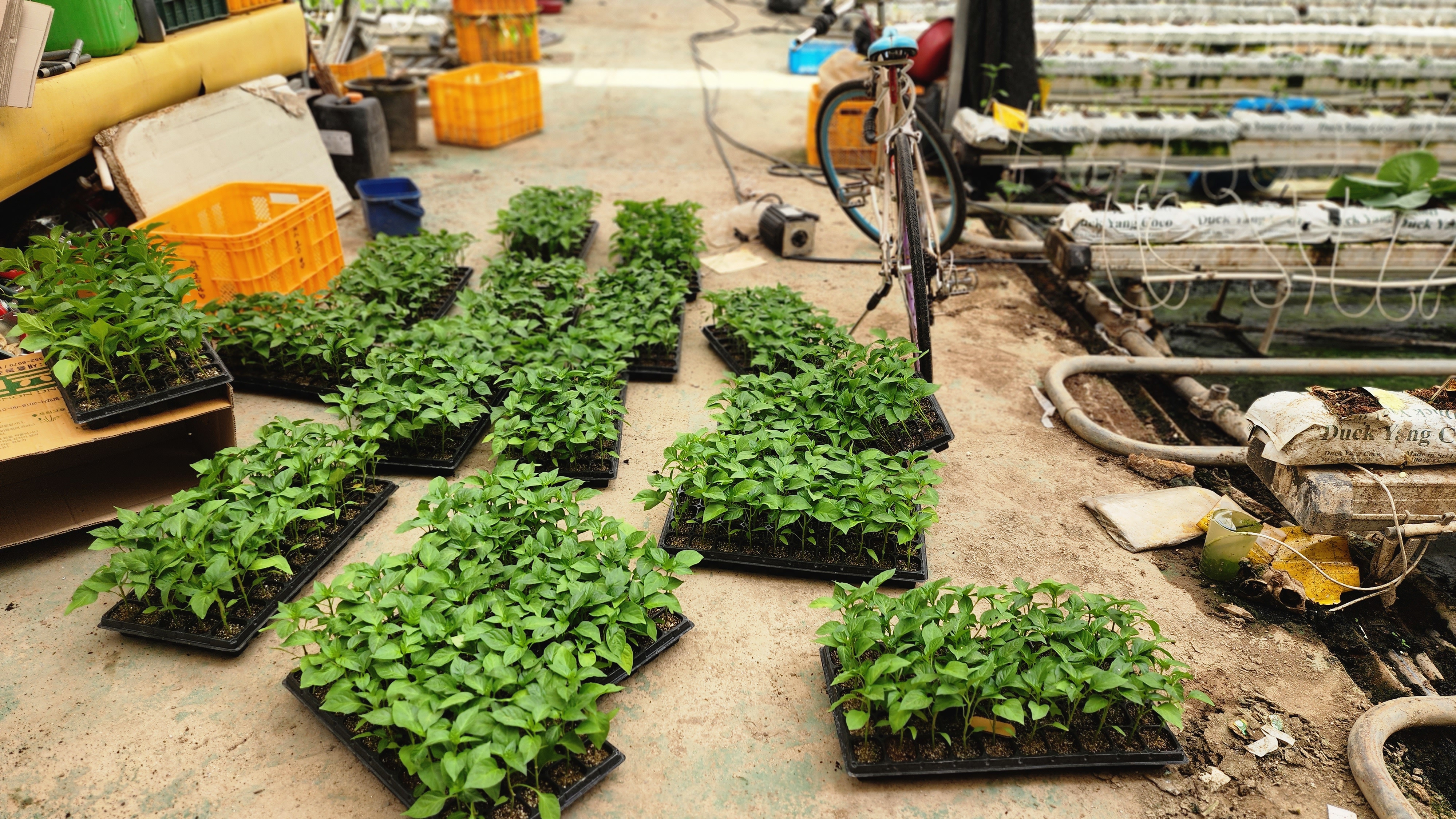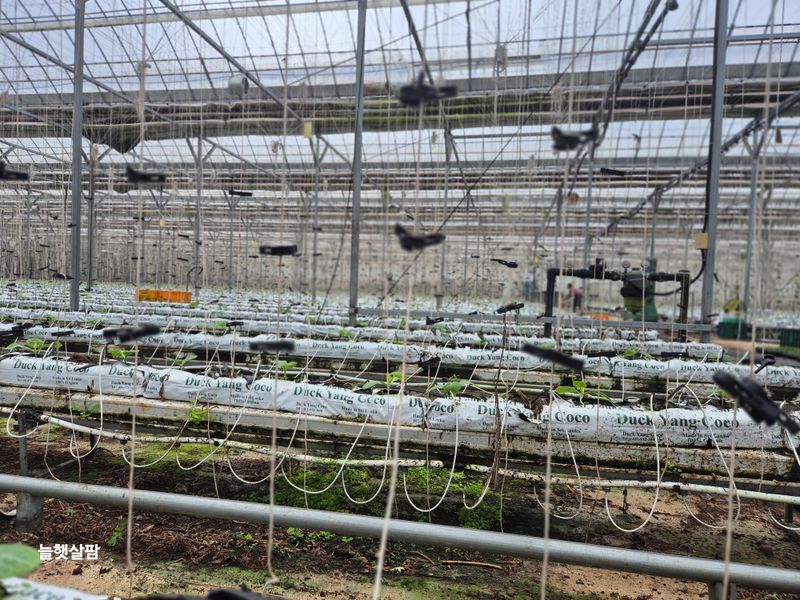 1,양액공급. 1시간 들어가게 세팅 8번(22480) 2,빨강 파프리카 얻어다 보식 3,청소 4,줄내림 4줄 5,끈끈이 아래로