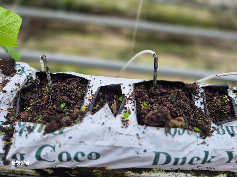 맑음 1)개천하우스 카시미론 마무리 했음 2)피망 모종 일부 옮김 3)코코베지 물 주기