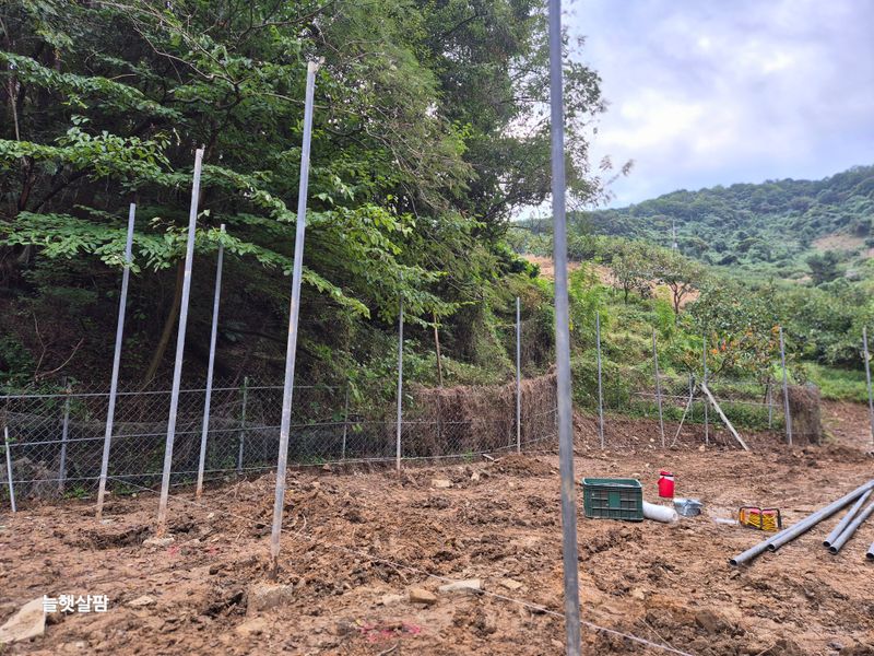 맑음 1)애호박 순 정리 2)동쪽 스크린 줄 매기 3)가지 수확 선별 4)두릅나무 10포기 심기