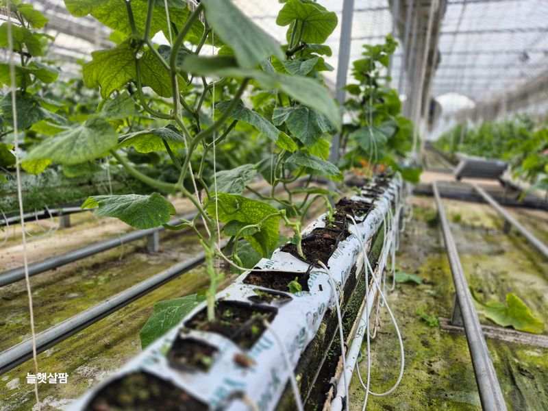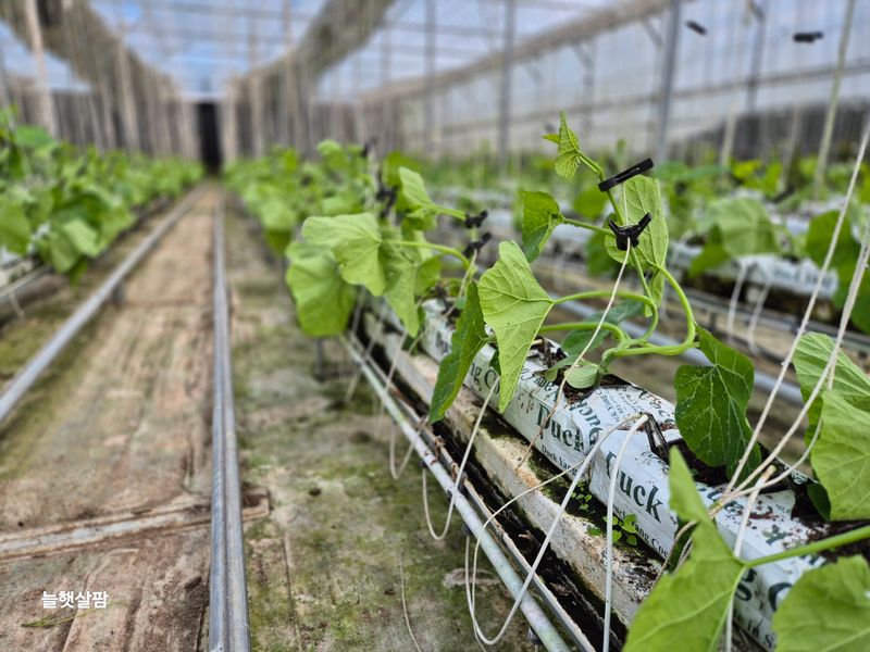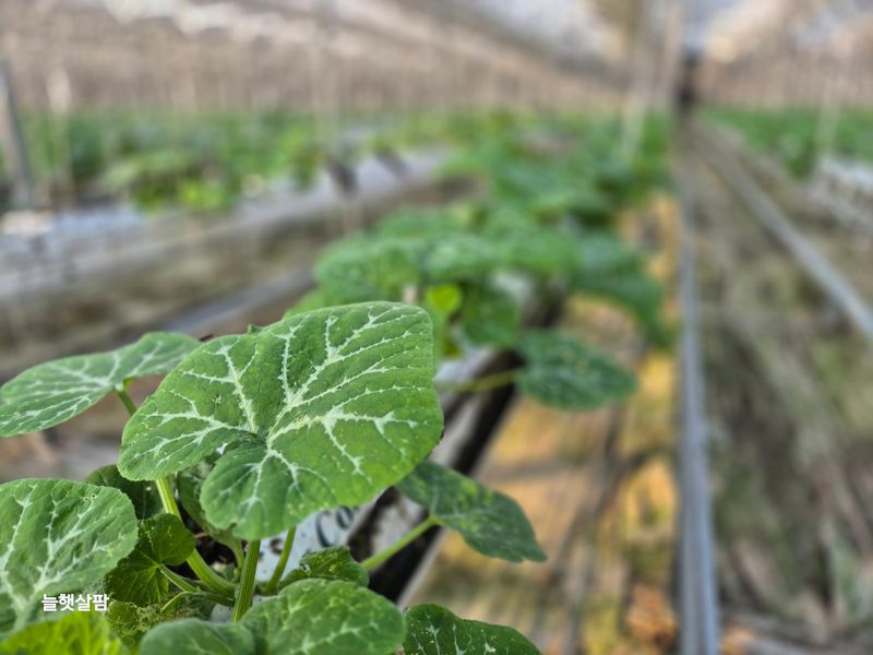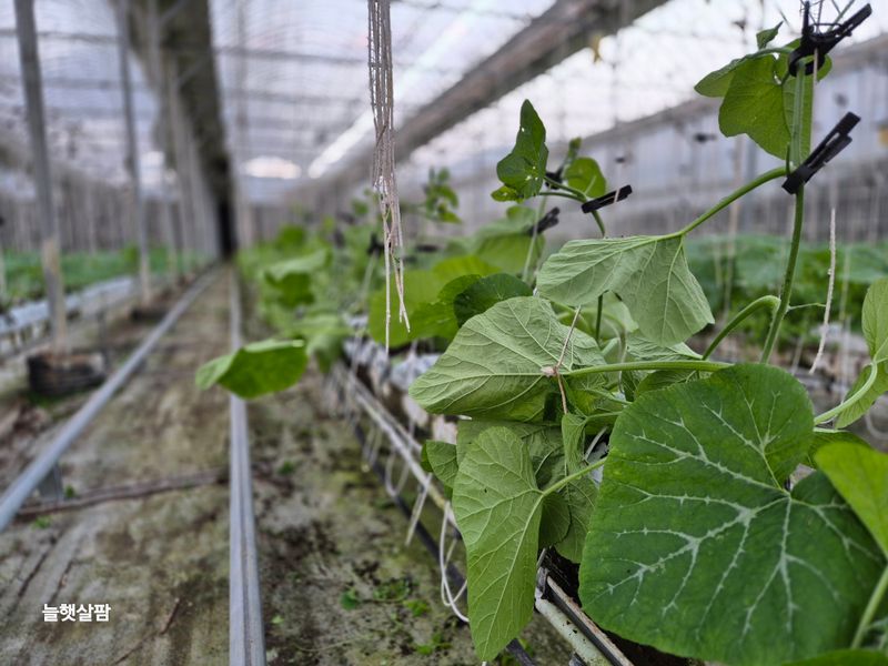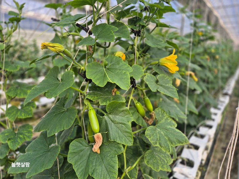 비닐 씌우기 애호박 유인작업 애호박 컨설팅 현장교육