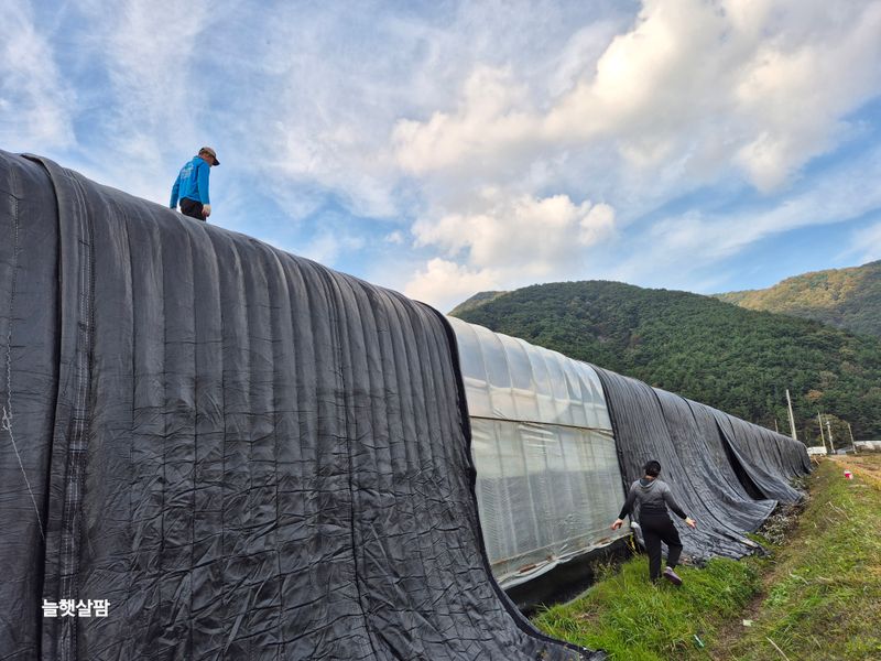 1,순작업 .2,남쪽 비니루 씌우기