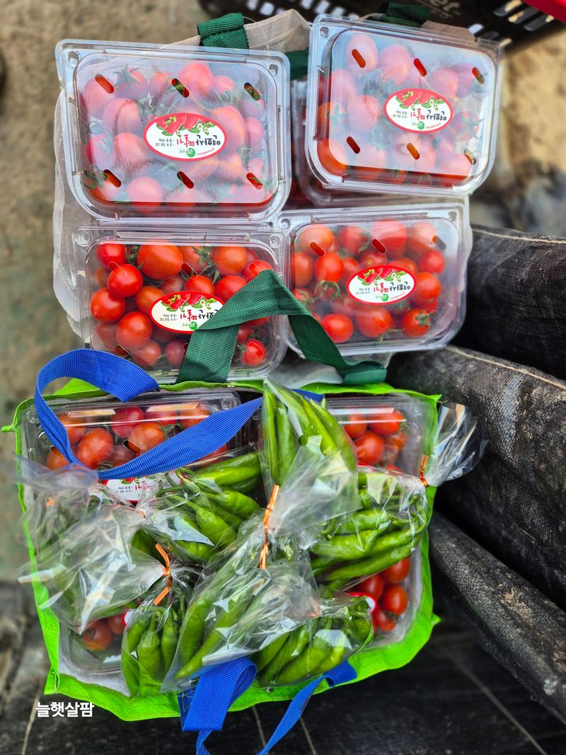 흐림 1,방울토마토 로컬 포장 했음 2,가지 수확과 선별 도와줌 일은 천지 생각만큼 굴지 않고 마음은 바쁜디 몸은 아장 아장