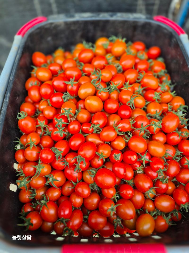 맑음 1)스크린 수리 남자인력 2명 3일째 2)방울토마토 옆가지 제거와 집게 작업 3)방울토마토 로컬 포장