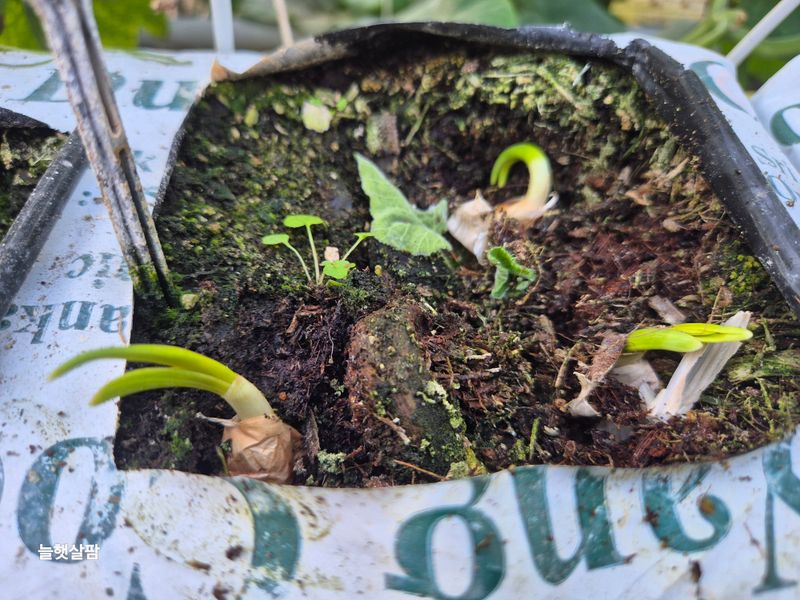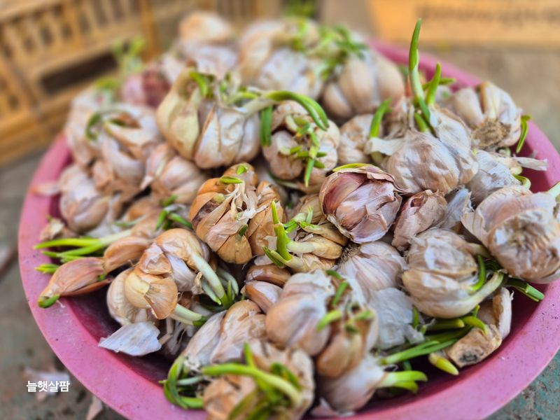 맑음 애호박 수확 인큐 수정 가지 하우스 수확 선별 도와 주기 버리고 간 마늘 싹이 났다 나는 버릴수 없어 심었다