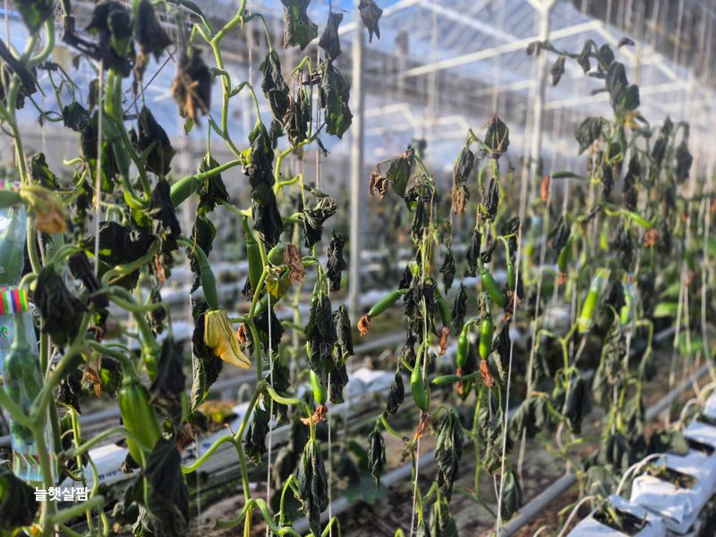 강풍 비닐 사다 놓음 펄럭이는것 제거 애호박 수정 수확