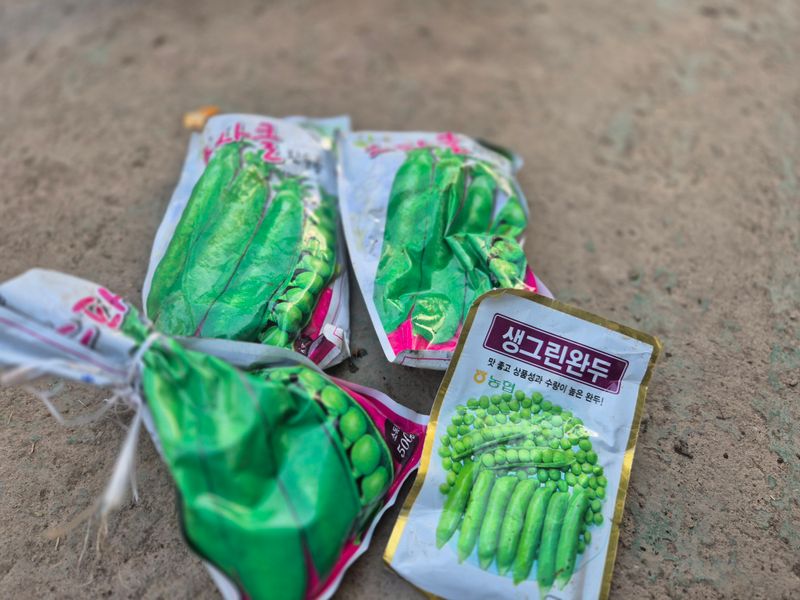 맑음 하우스 정리중 완두콩 씨앗 찾아 놓음