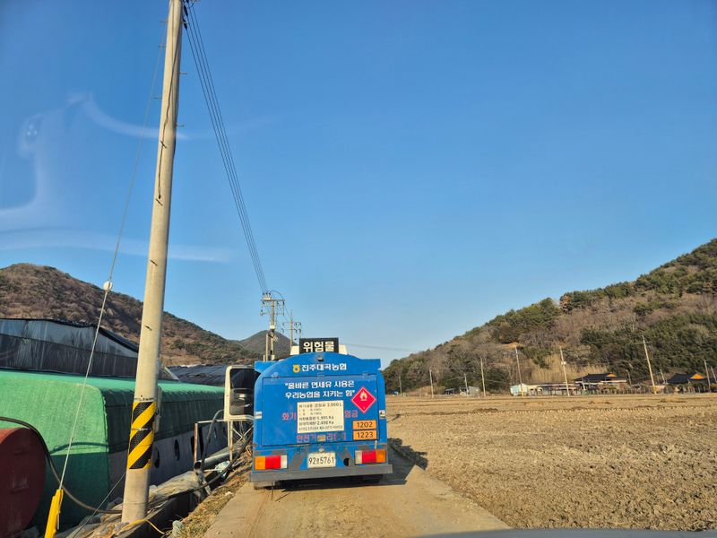 흐림~맑음 첩첩 산중 ~골 때림 살자 살다 보면 끝이 있으리라 오늘도 지나 가리라 애호박 수정 레일 체크. 가지 수확과 선별 도와줌 하이신 기름 3000리터 들어 왔음