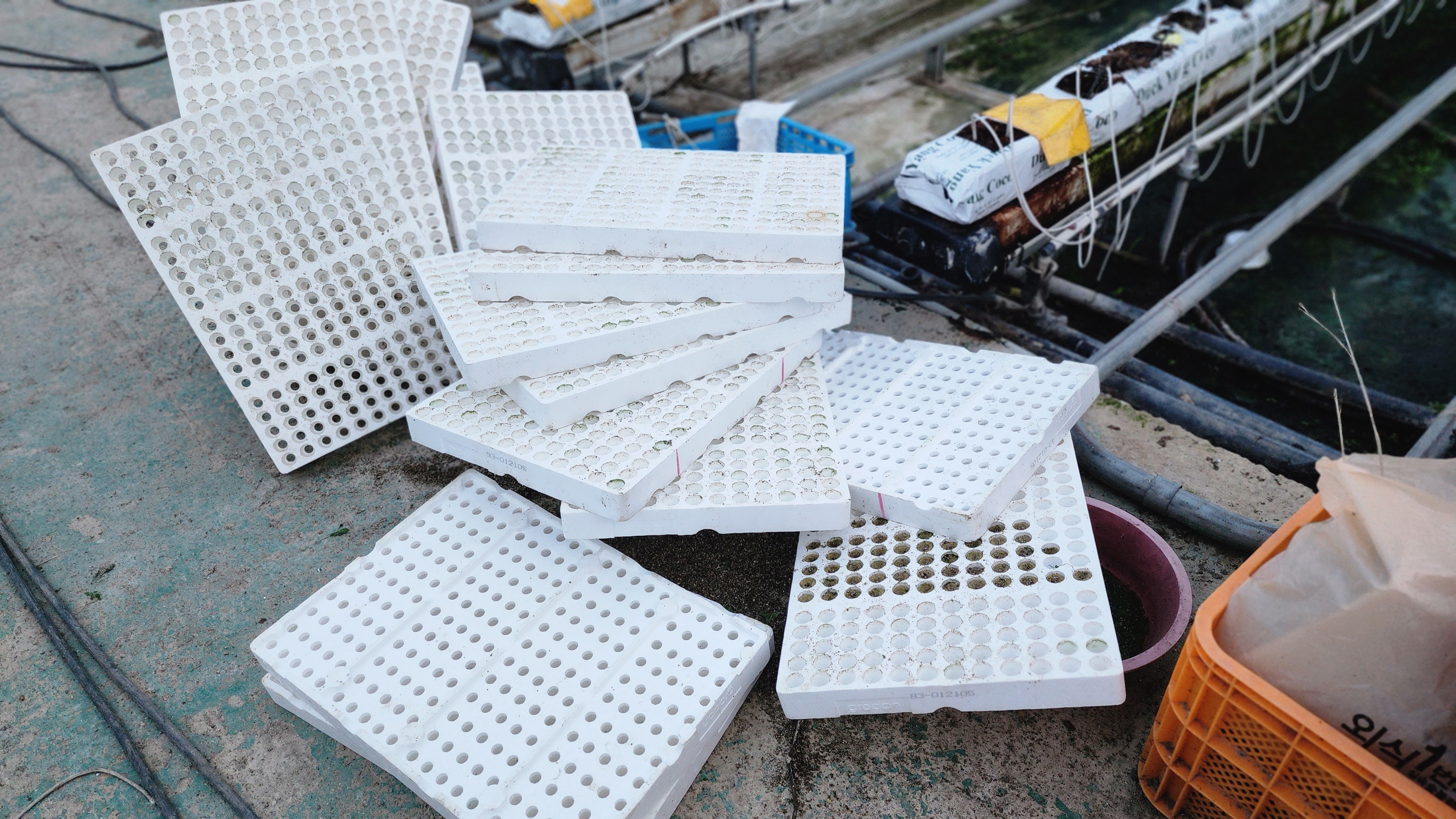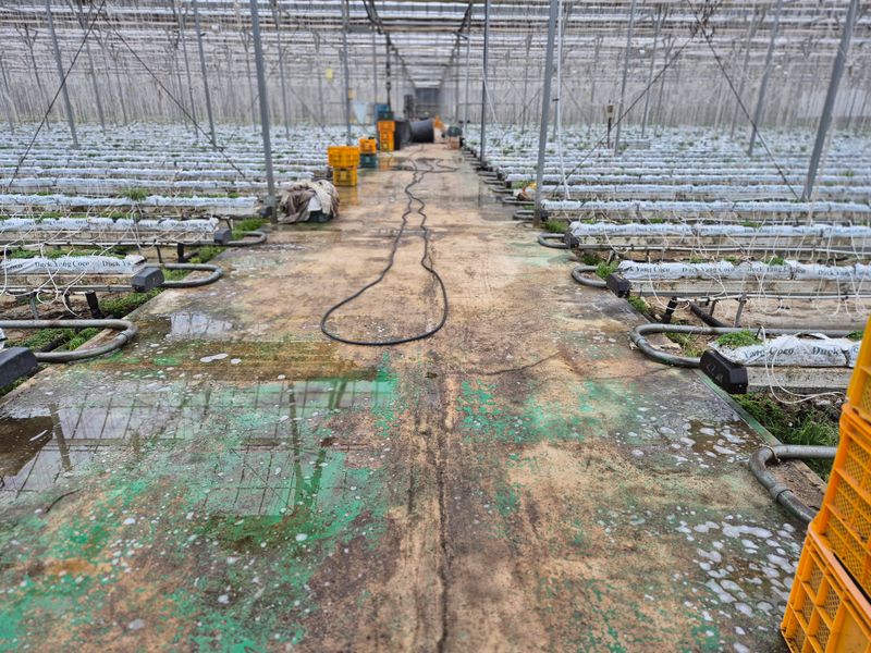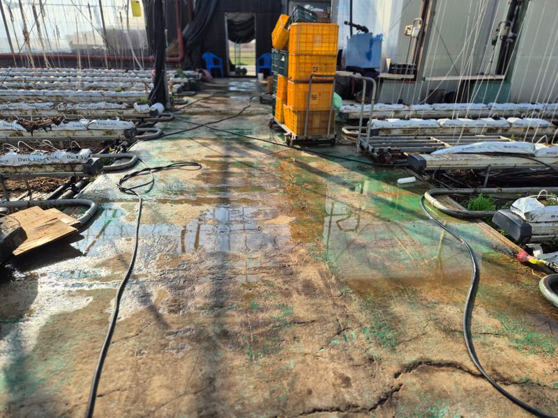 1,고구마 모종칸 철거 2,하우스 입구 청소 3,콘티 일부 씻음 4,코코베지 차염산 소독 시작 5,농장 차염산 살포 반