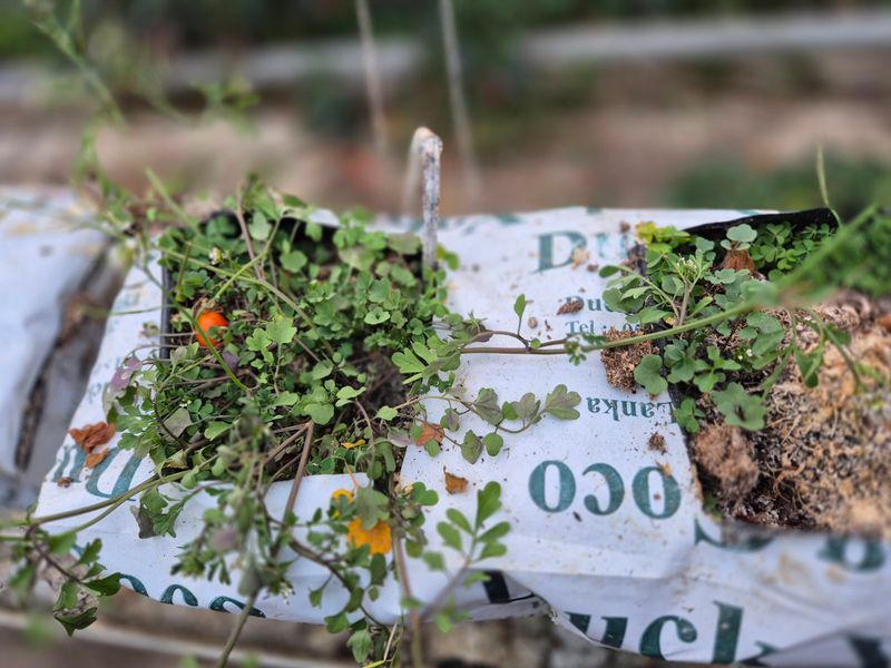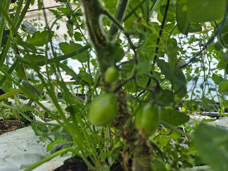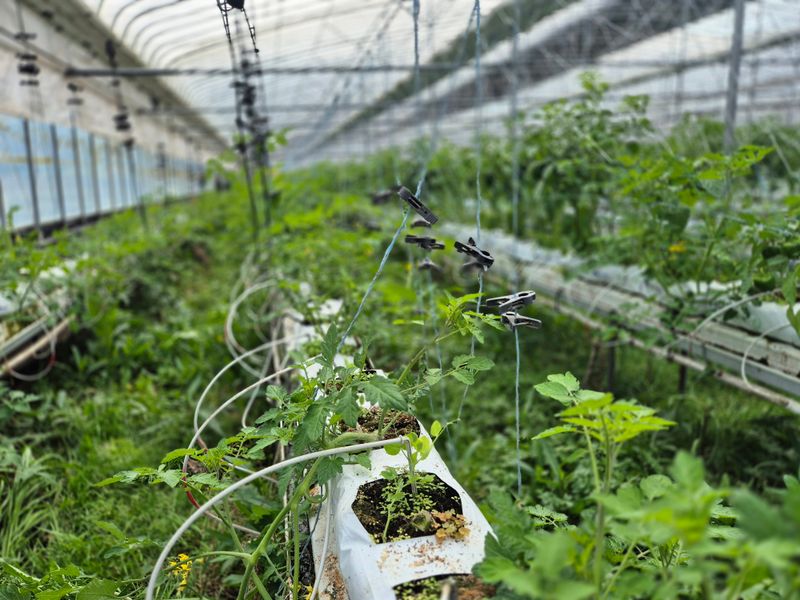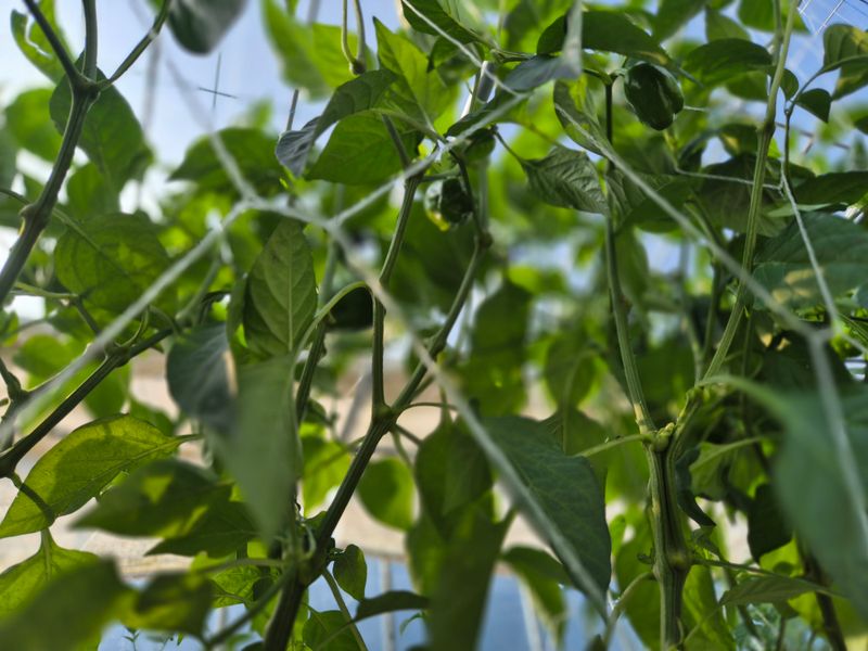 맑음 피망 나무 손 보고 방울이 잡아 주고 꽃도 딴다 앉으면 잡초도 뽑으면서 뒤죽 박죽 손이 가는 대로 작업 중