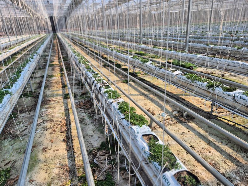 유인작업 오전4명 오후3명 딸기 하우스 작업