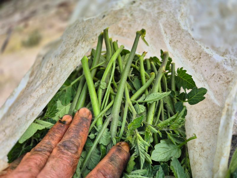 맑음 피망 나무 손보고 딸기핀 정리 했다 중고 파이프 거래 하나씩 정리 한다