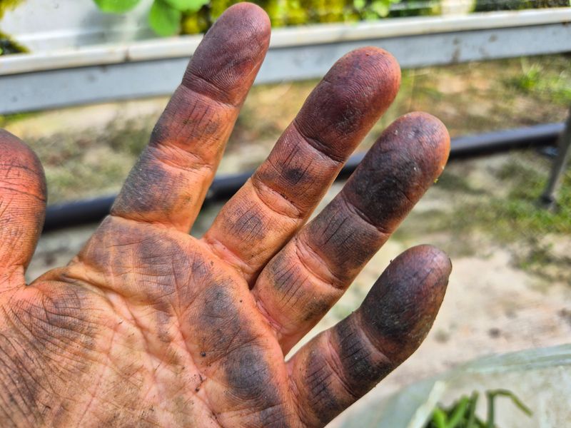 맑음 토마토 모종 점검과 드리퍼 교체작업 염소 똥 치우기 손바닥 물집 생겼다 일을 하고 있는 흔적이다 오늘도 농부 수고 했네
