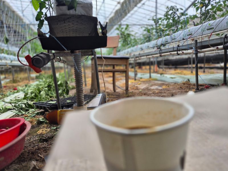 1,양액B통타기 2,작은필터와 큰필터 씻음 3,폐액 체크 4,인력2명과 농부 줄잡기 5,베지측정기 모니터 서비스 6,새싹모종 블럭 넣어봄 7,청벌레 잡기