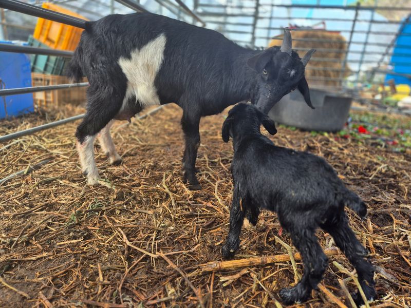 맑음 염소 새끼들이 귀여워 자꾸 들어다 보게 됨 거트 물청소 마무리 잡초 뽑기