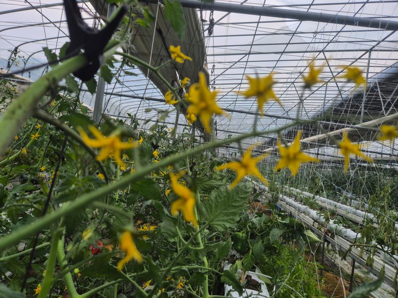 맑음 피망 하우스 방울 토마토 손보기