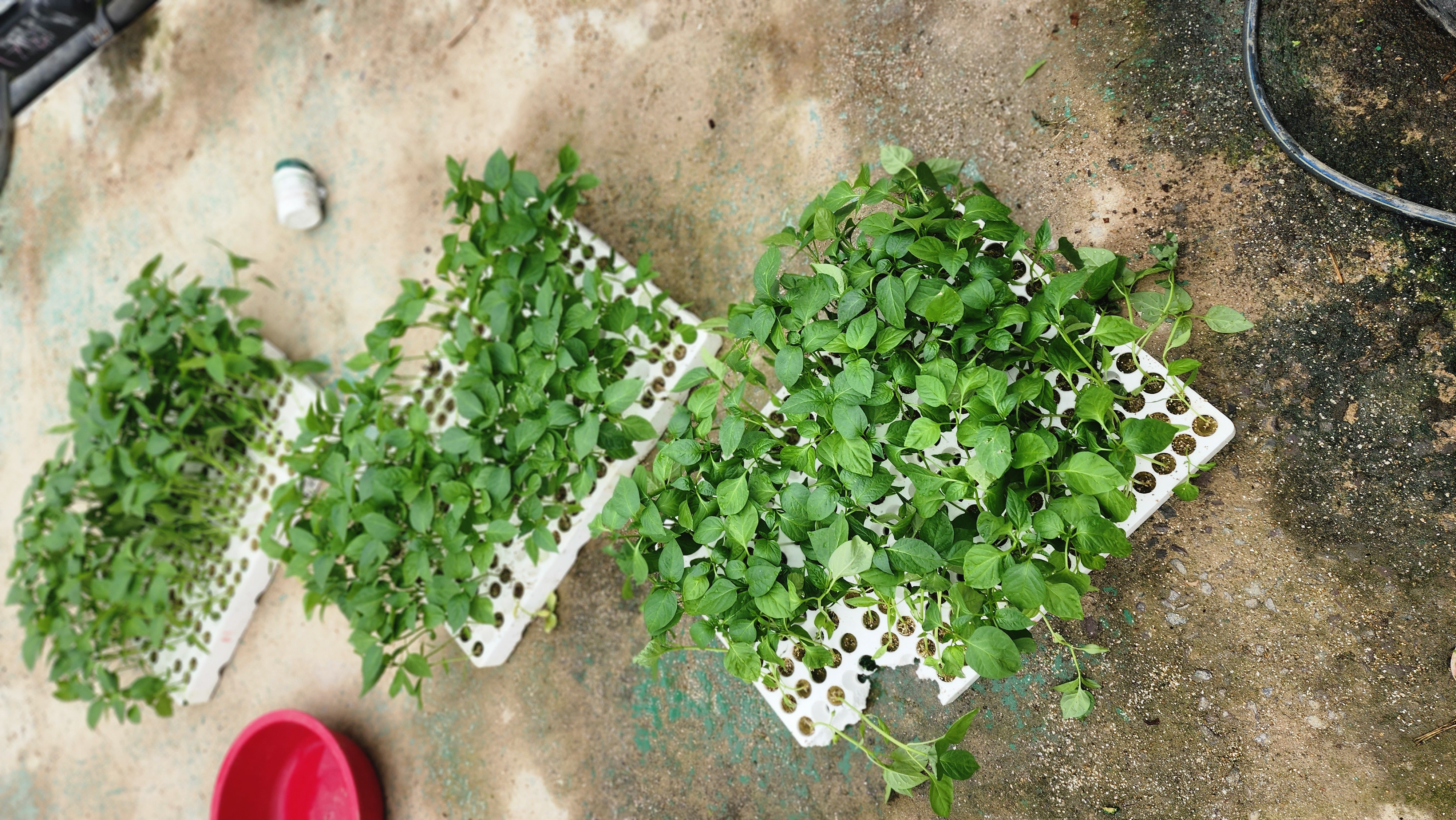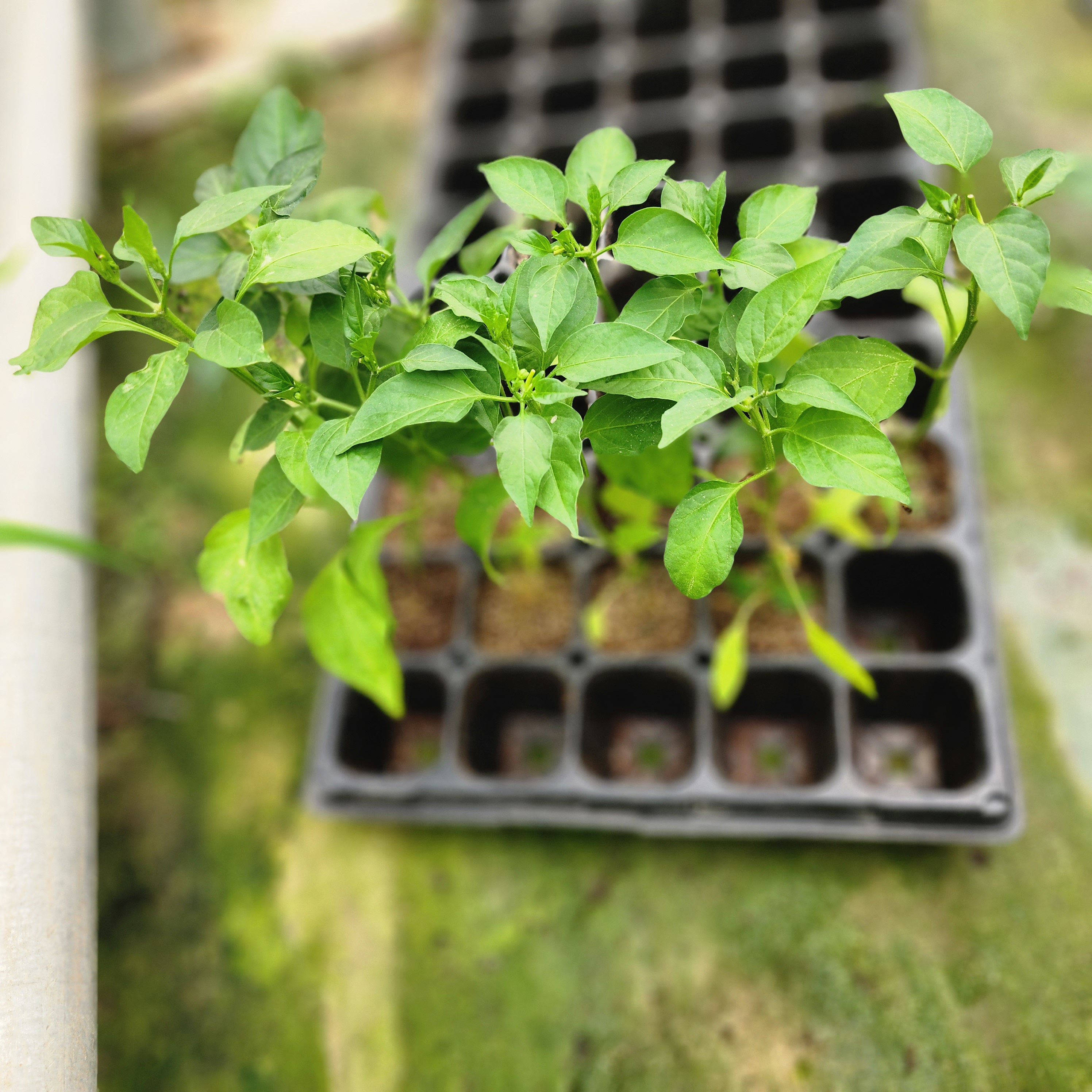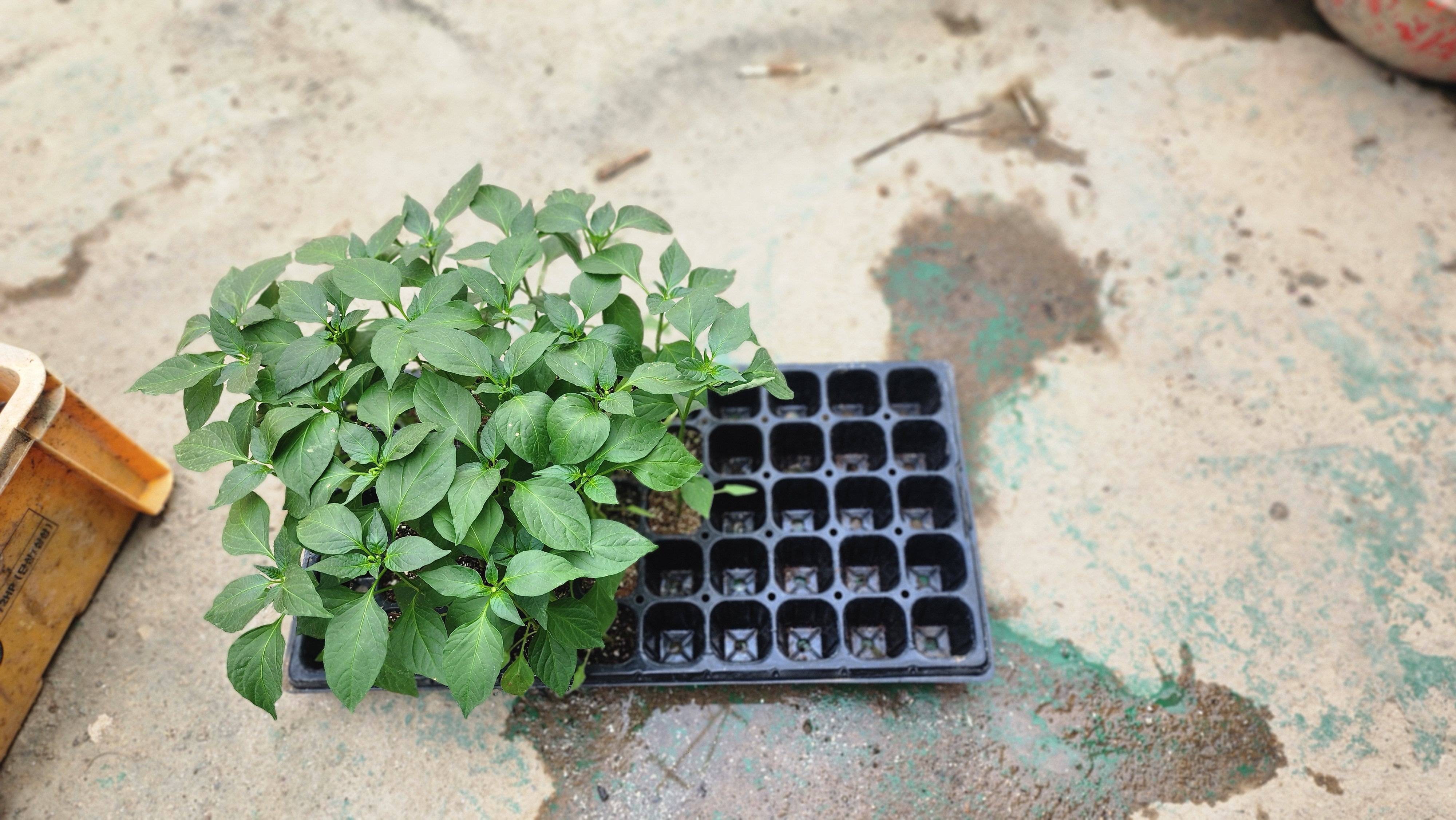 흐림 피망모종 나르겐. 넣어 물 흠뻑 줌 날씨가 차가워 지면서 성장이 추춤이는것 같다