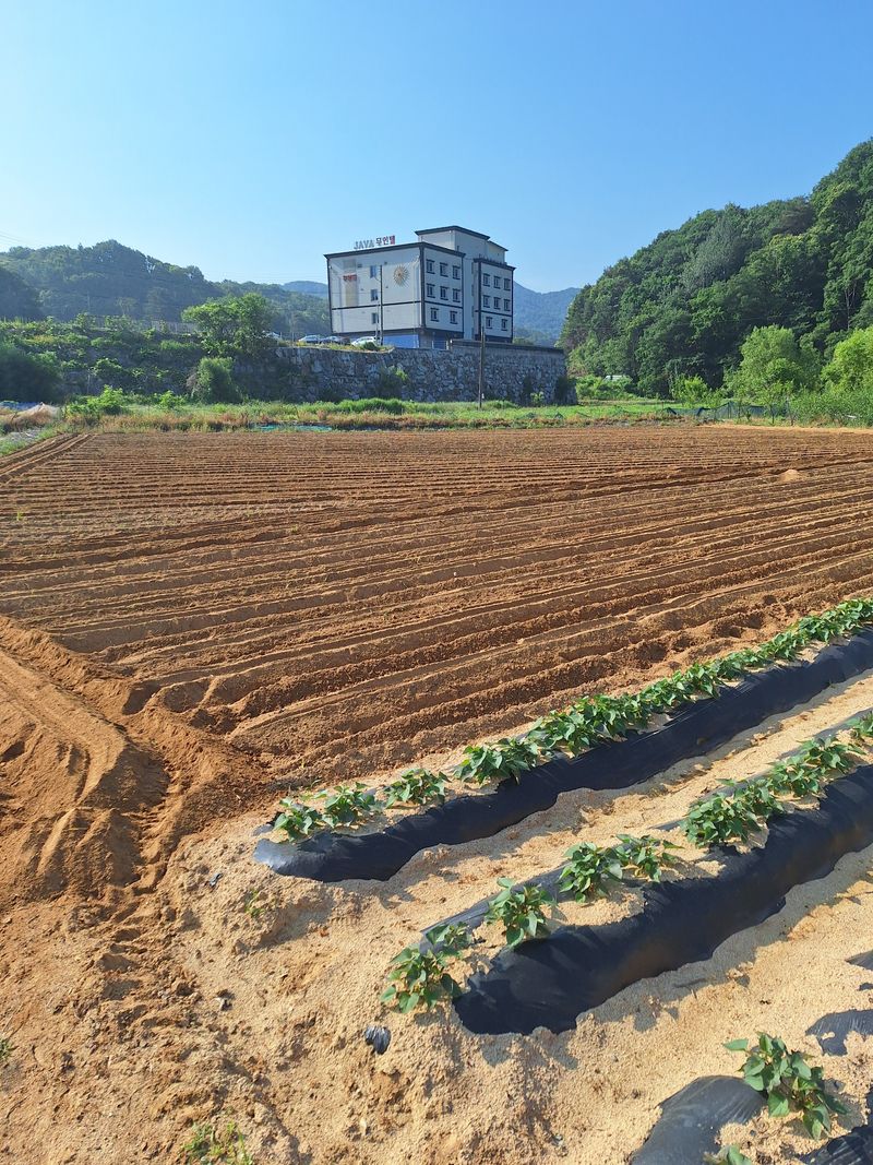 수확량이 적어습니다. 비가내려서 땅이 질척해요.