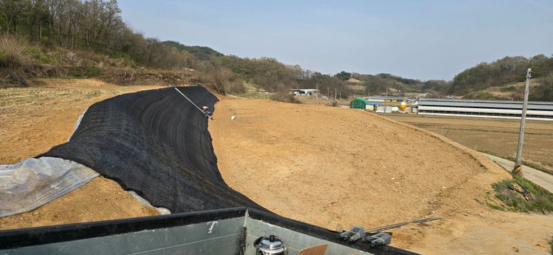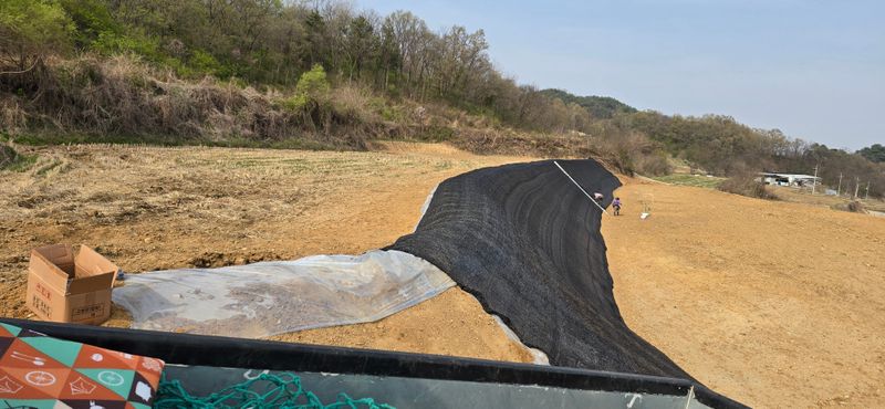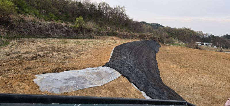 논뚝비닐씨우기와차광막씨워서 장마때뚝내례가지안케할려고 작업하여내요