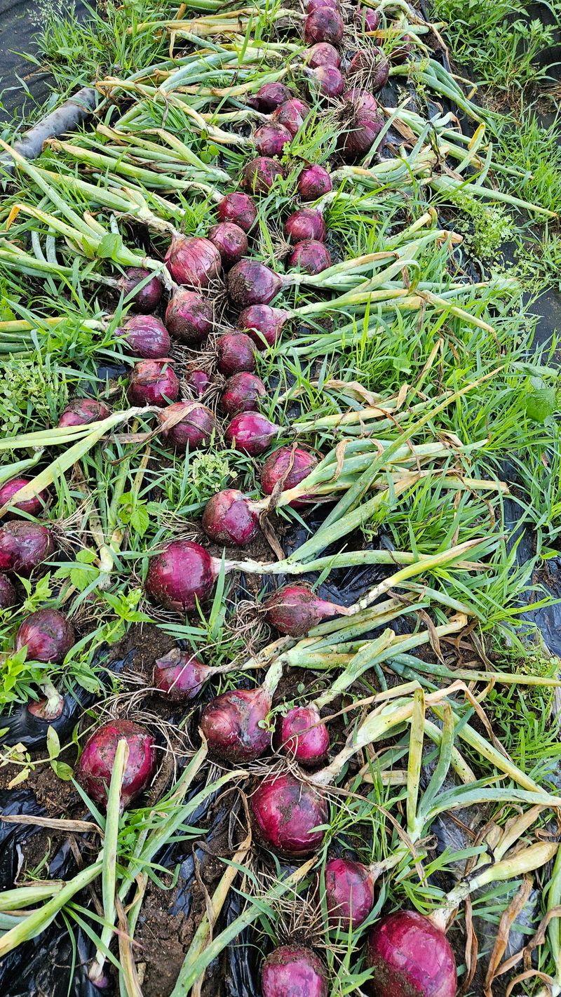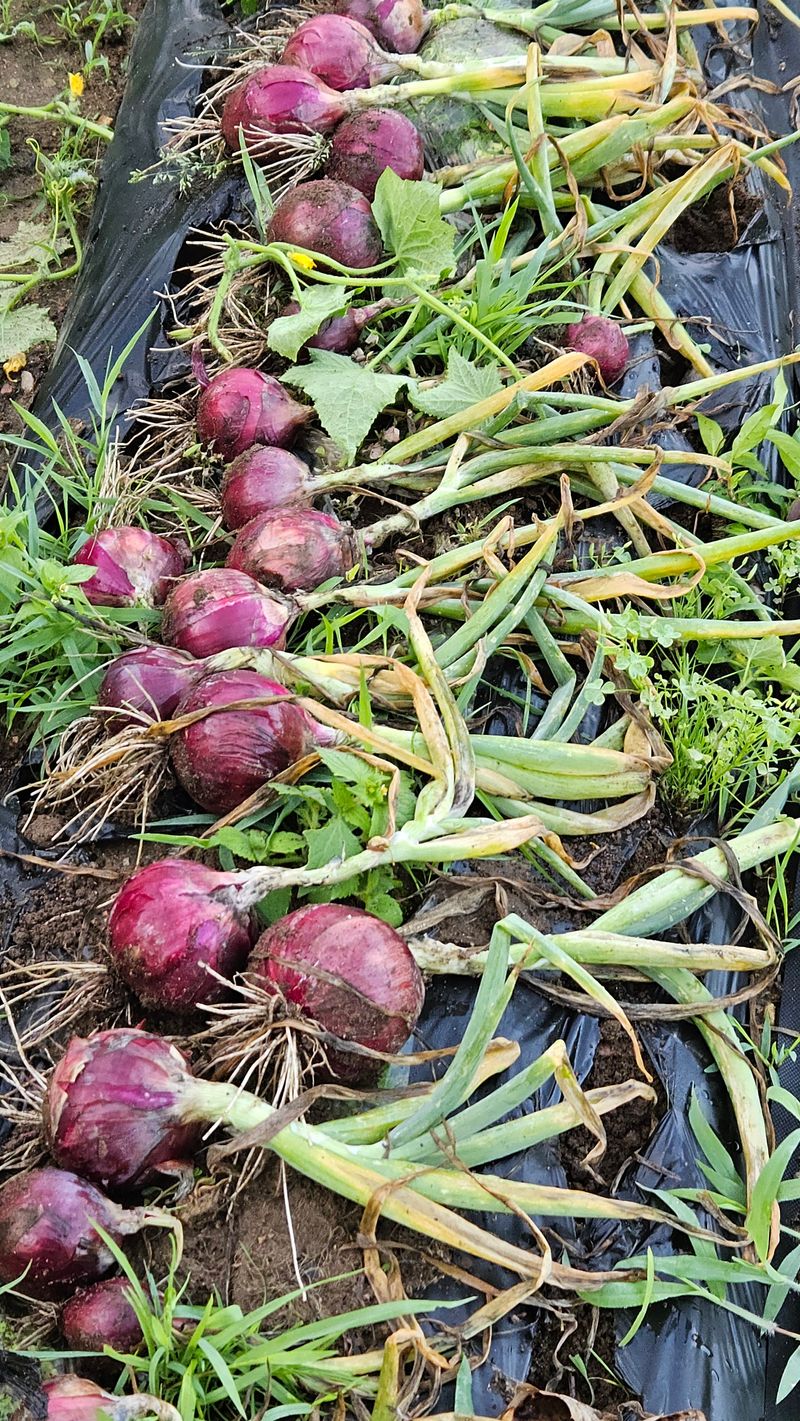 양파 수확 했습니다 비내리기전 수확하지 못하여 걱정했는데,,, 흡족하게 잘 되어주어 이 아침에 기분이 좋았습니다