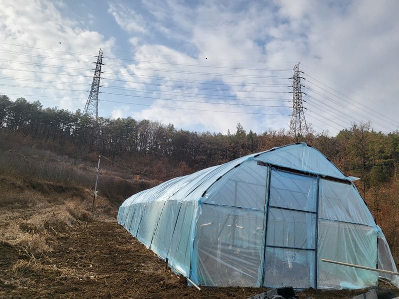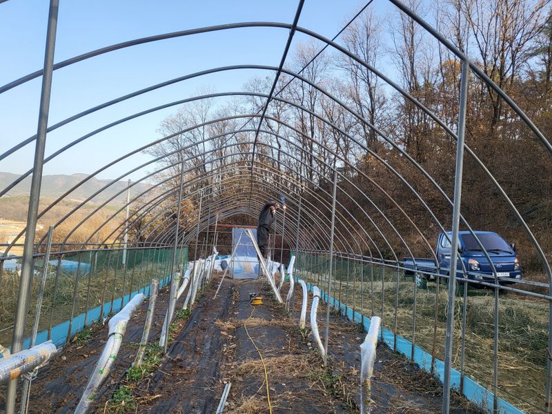 포도 하우스에 비닐씌우기 현일 난현이 도와주다