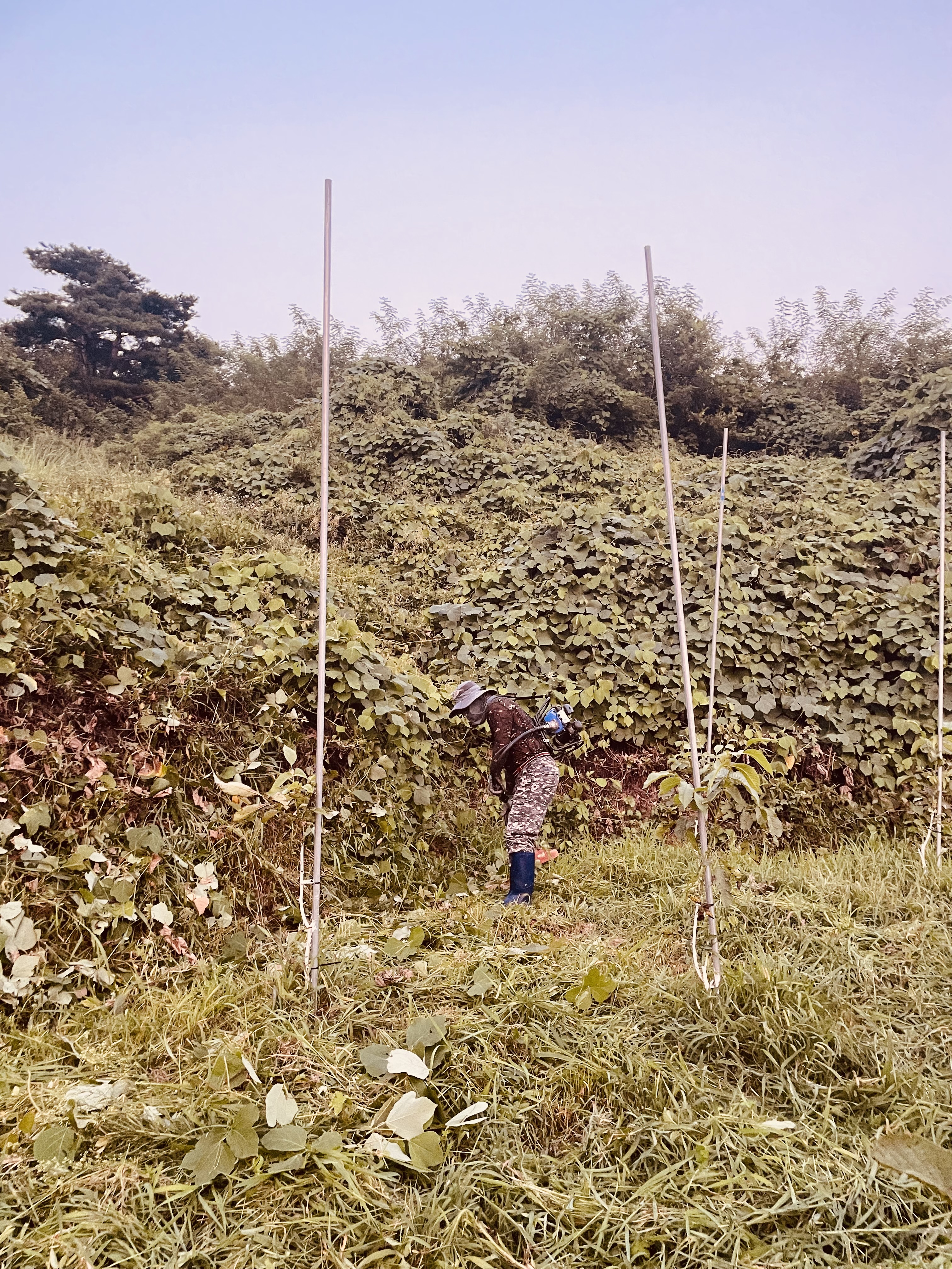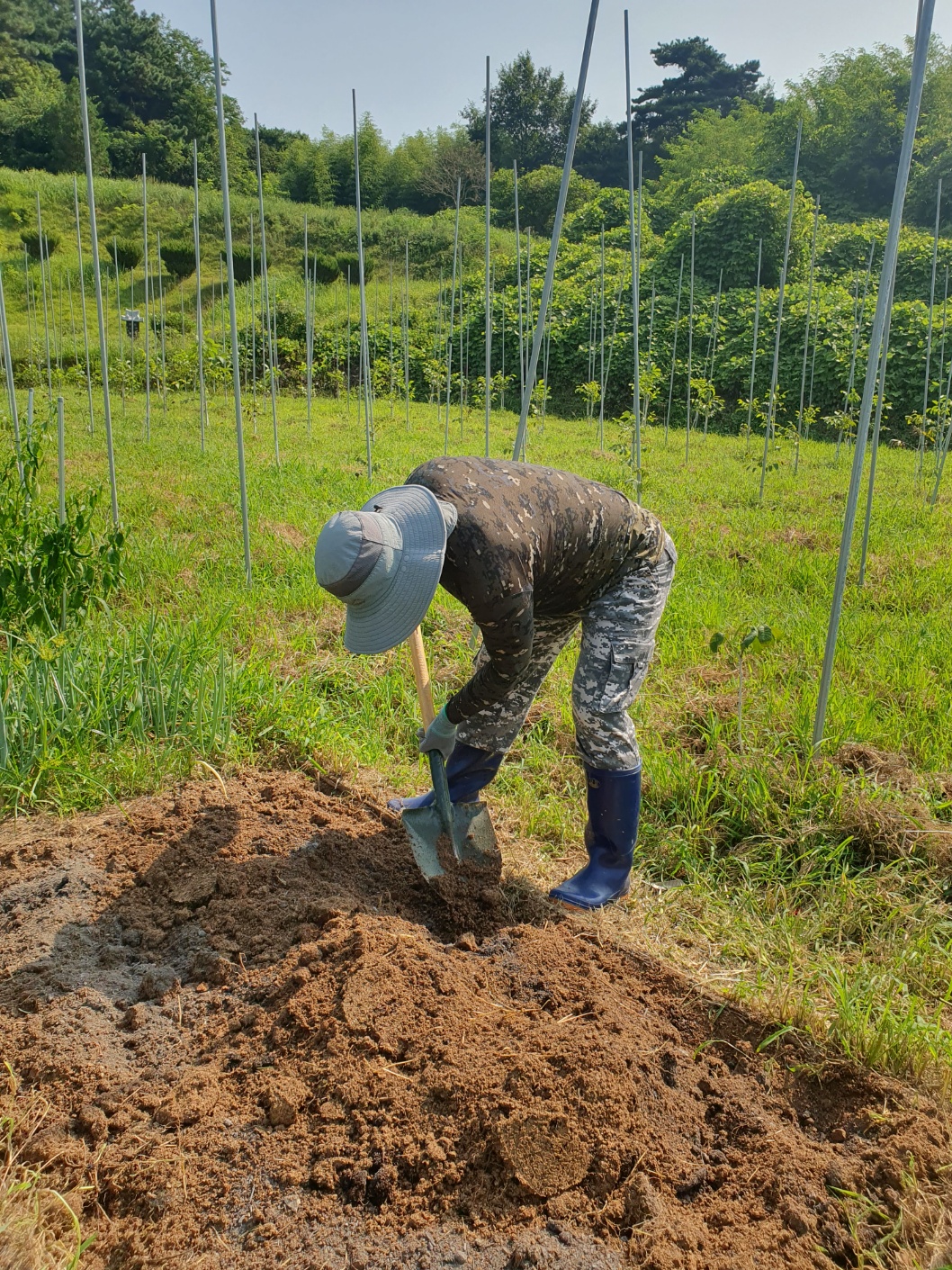 호두나무 가지전정 및 텃밭 물주기 동물방지망 설치