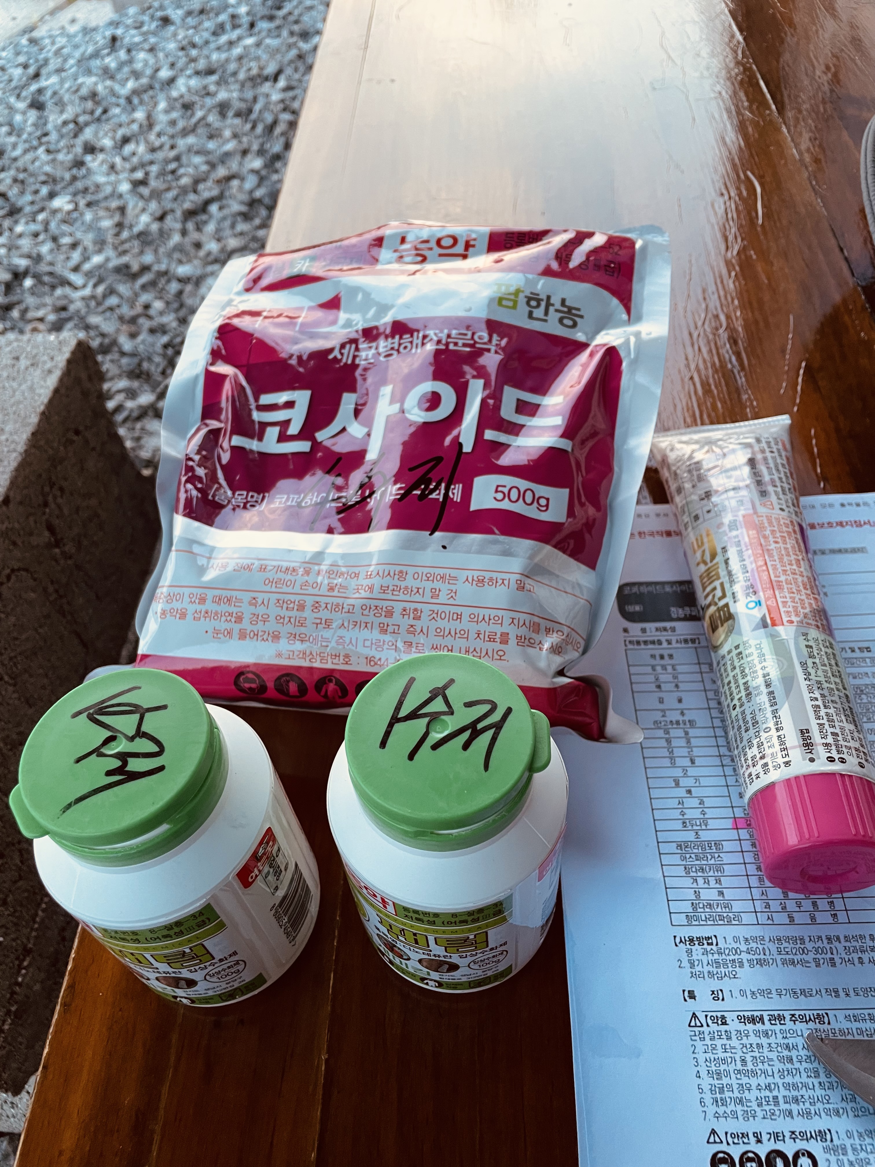 호두나무 가지 정리 및 병충해 관련 정보 검색후 약제 준비, 잡초관리