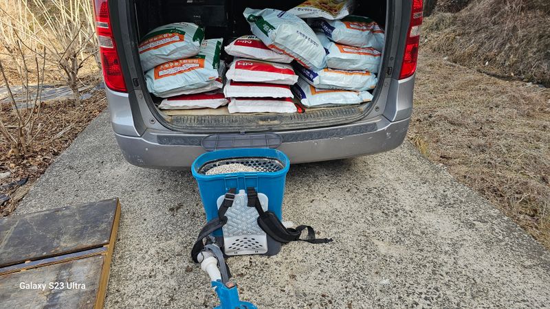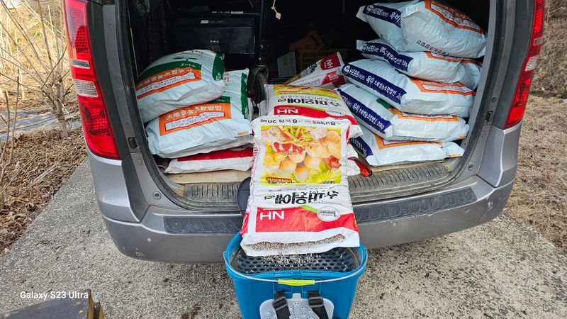 퇴비운반 100포 문철이한테 산125번지 퇴비5포 뿌리기 엔골30 견불20 왕모평15 매촌15 구룡15