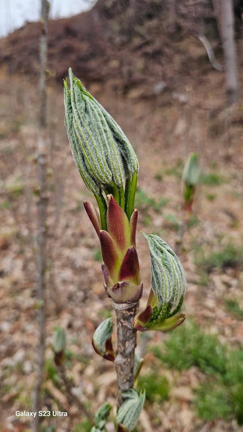 음나무 묘목잎이 단풍도 안들고 새파란 색으로 있다가 그대로 말랐다 그저께 영하10도