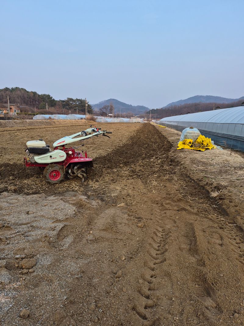 노지봄감자심을곳 퇴비료와 유박비료프리고 토양살충제살포후 관리기로로타리작업