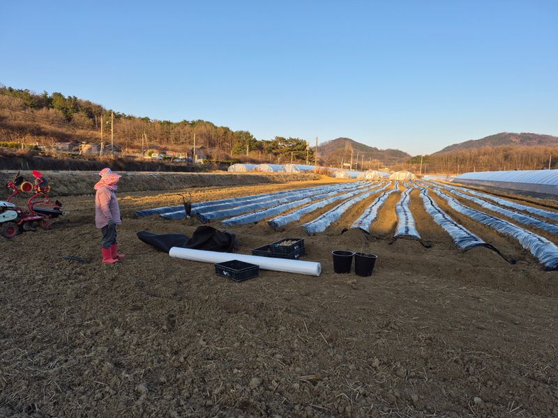 씨감자가 많이남아서 100평정도밭을 더늘려서 동시피복기로 골을 만들어서 비닐멀칭하고 더심었습니다
