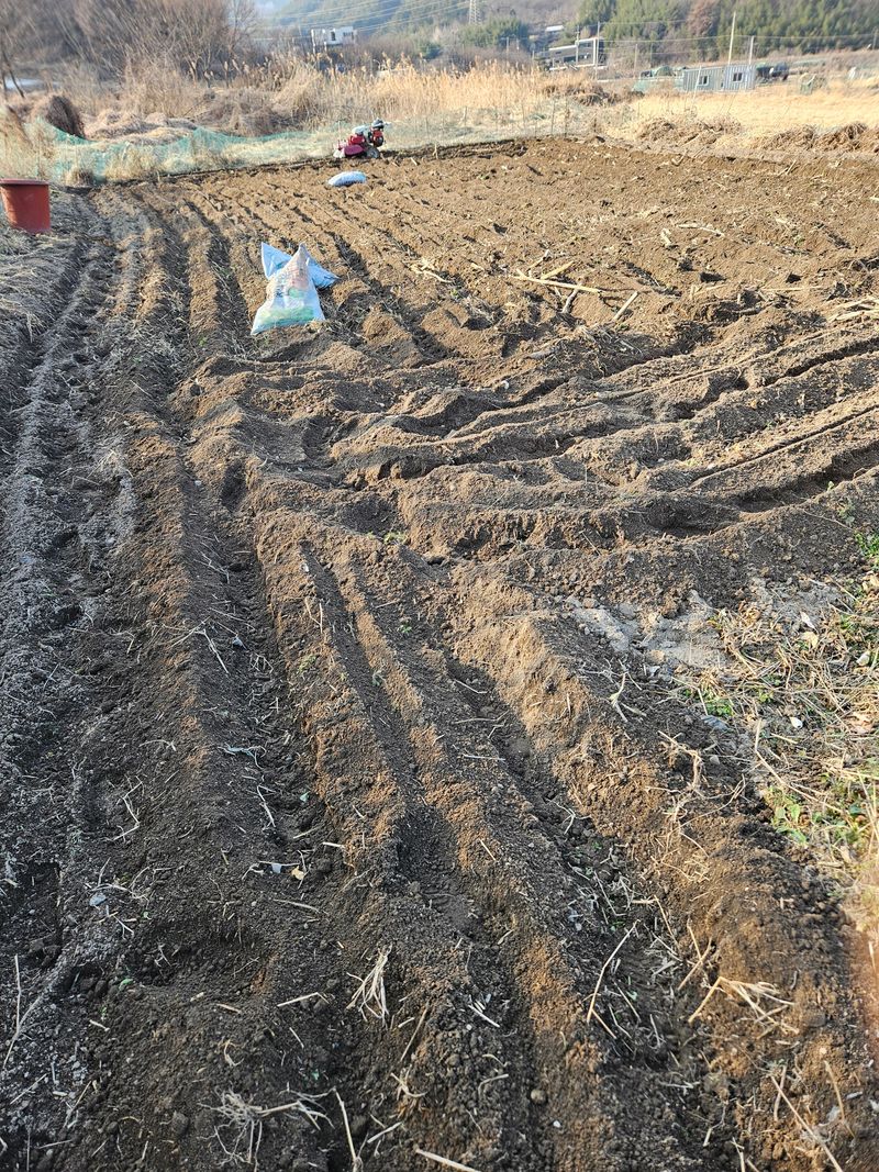 고추대 뽑고 멀칭비닐 걷어내고 마른풀 걷어내고 관리기로 땅을 뒤집었다. 며칠 말리고 토양살충제, 토양살균제, 축분퇴비, 복합비료, 유박비료를 뿌리고 2차로 갈아 엎고 이랑을 만들고 멀칭비닐을 덥어야 한다. 감자심기를 하련다.