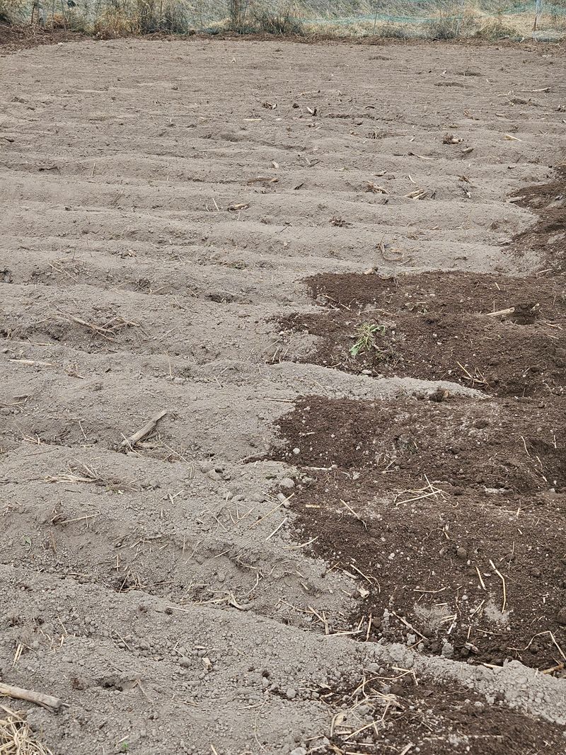 감자밭 정리 완료다. 고추감자전용비료, 복합비료, 유박비료, 축분을 뿌리고 갈아 엎고 이랑을 만들었다. 작업을 마치니 빗방울이 떨어진다. 비를 맞추고 며칠간 가스를 뽑고 멀칭비닐을 씌우고 감자를 심으면 된다ㅎㅎ