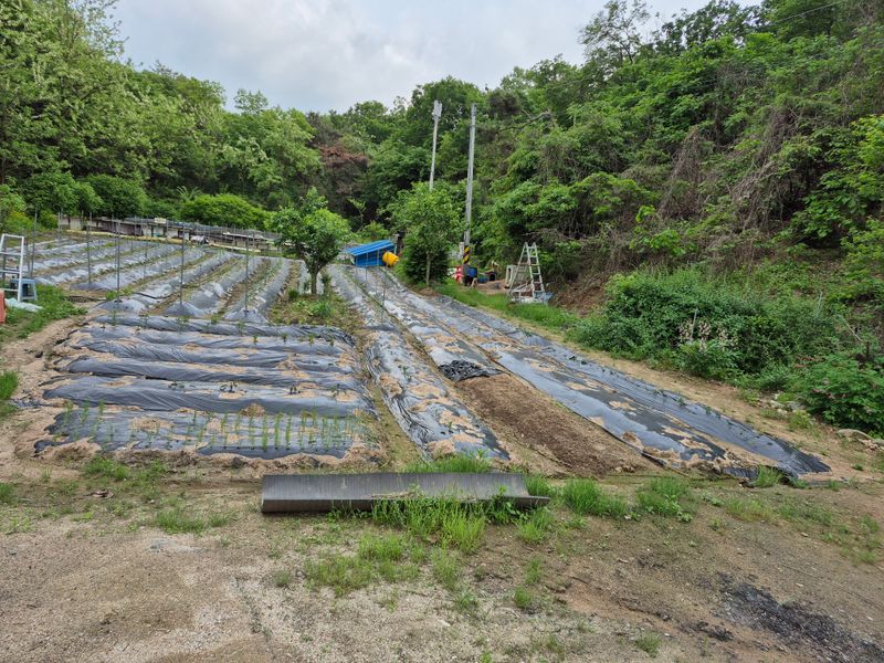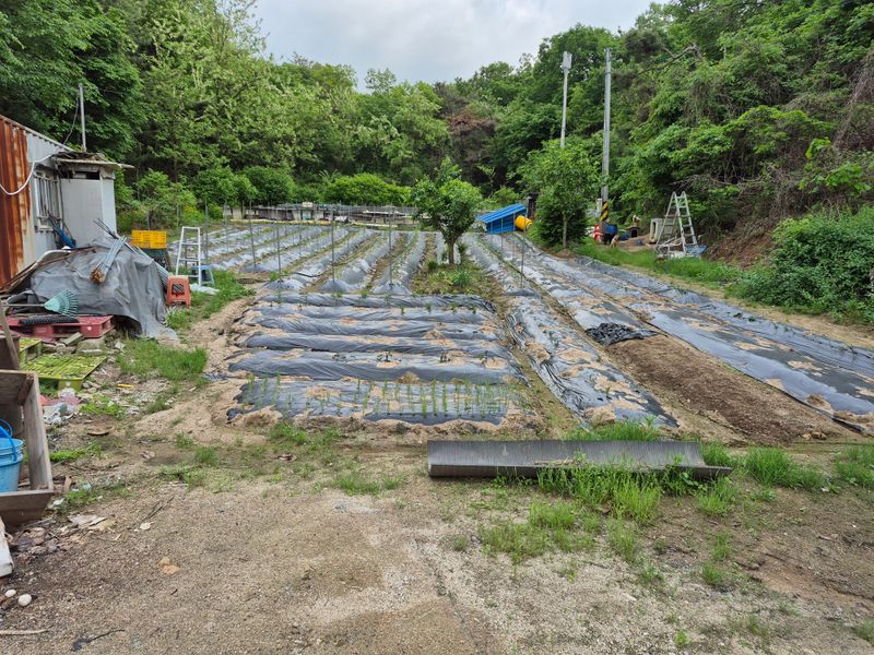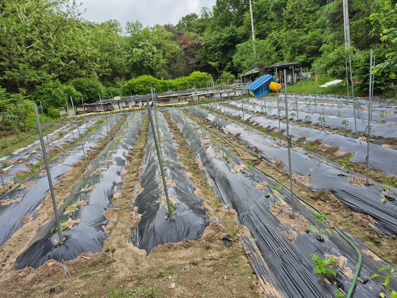 왼쪽은고추줄만뛰우면됨니다 오른쪽엔 잔대한두둑 바로옆엔 마를심어봐읍니다