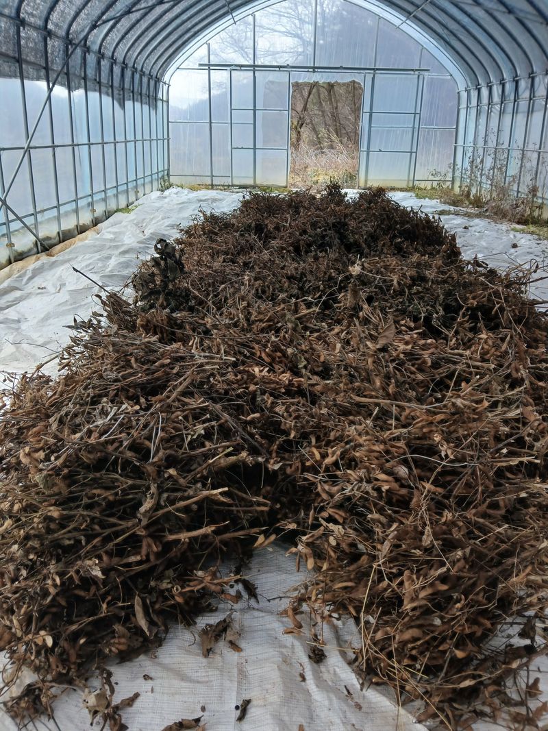 서리태콩깍지 걷어서 퇴비장에 넣고 폐비닐 걷어서 폐기장에 내놓고 관상수 전지 시작했습니다!!