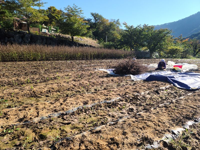 들깨 자르면서 타작했어요. 비가 너무와서 수확이 안나오고 덤으로 바람이 태풍급으로 부내요