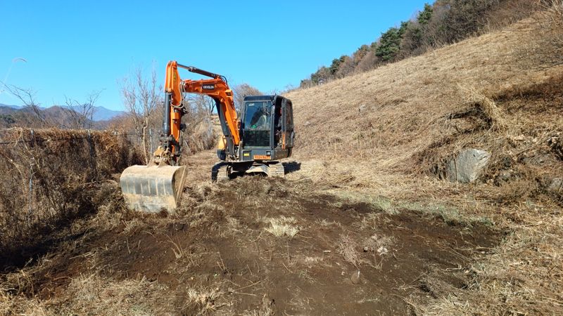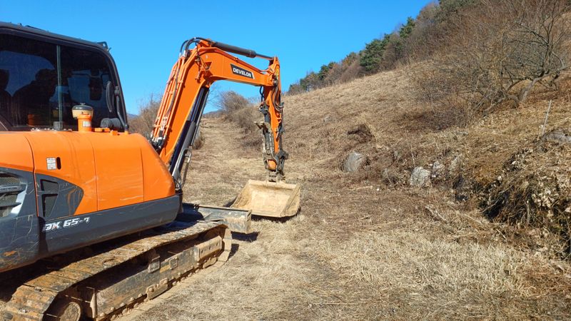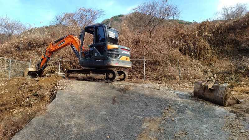 오늘도 굴착기 기사 인부2명 두릅농장에서 도로확장공사 와 두릅묘목식재하고 가타잡목 폐기작업함