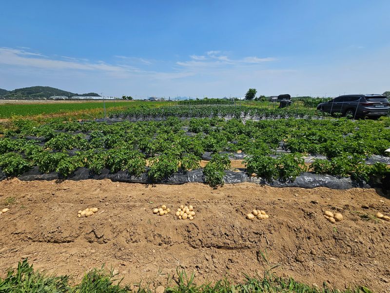 감자 수확후 밭갈고. 당근 무 야파 마늘 준비 중입니다