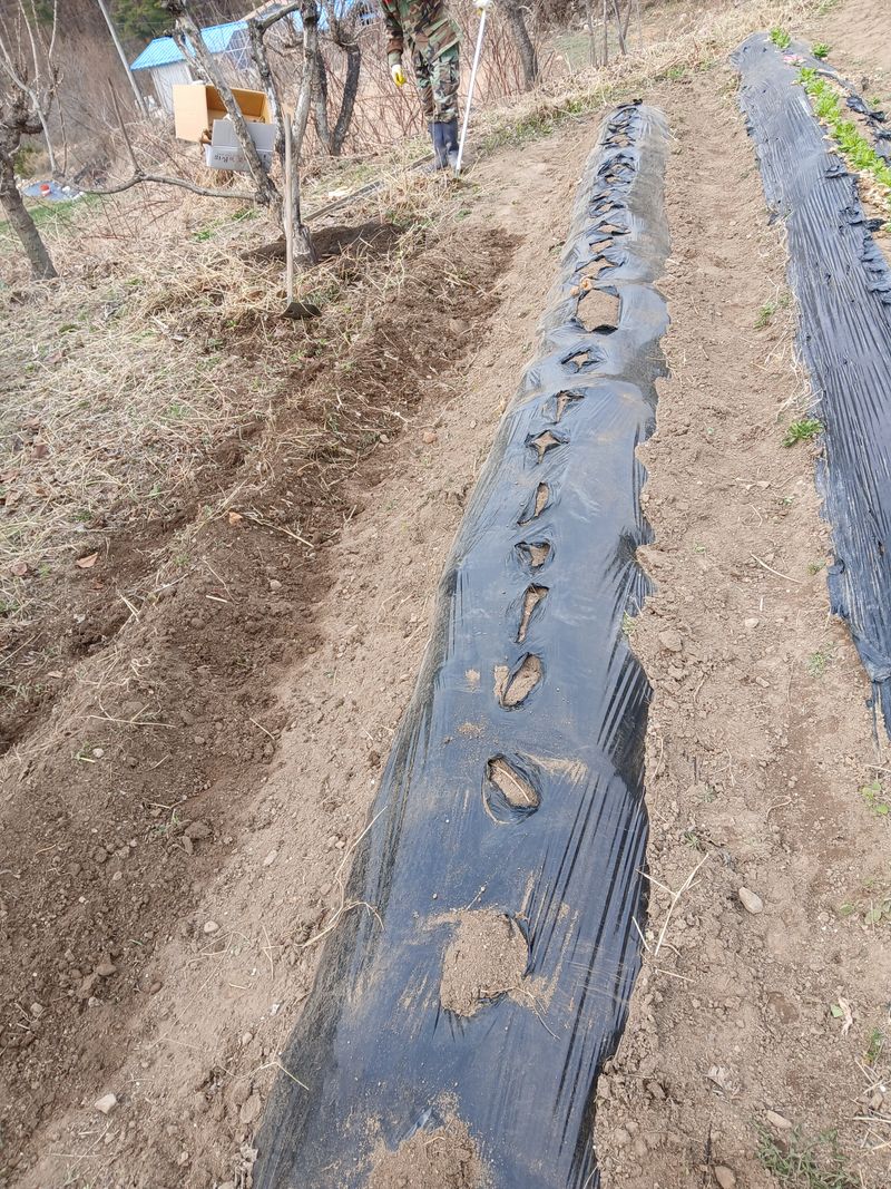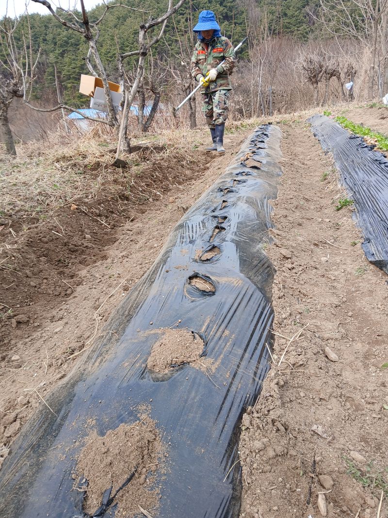 감자 멀칭비닐 씌우고 씨알감자 심기