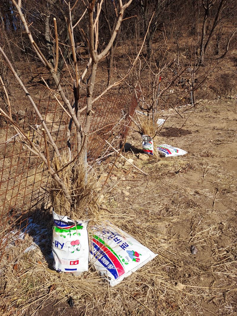 묘목에 퇴비거름주고 황소독작업 완료했읍니다
