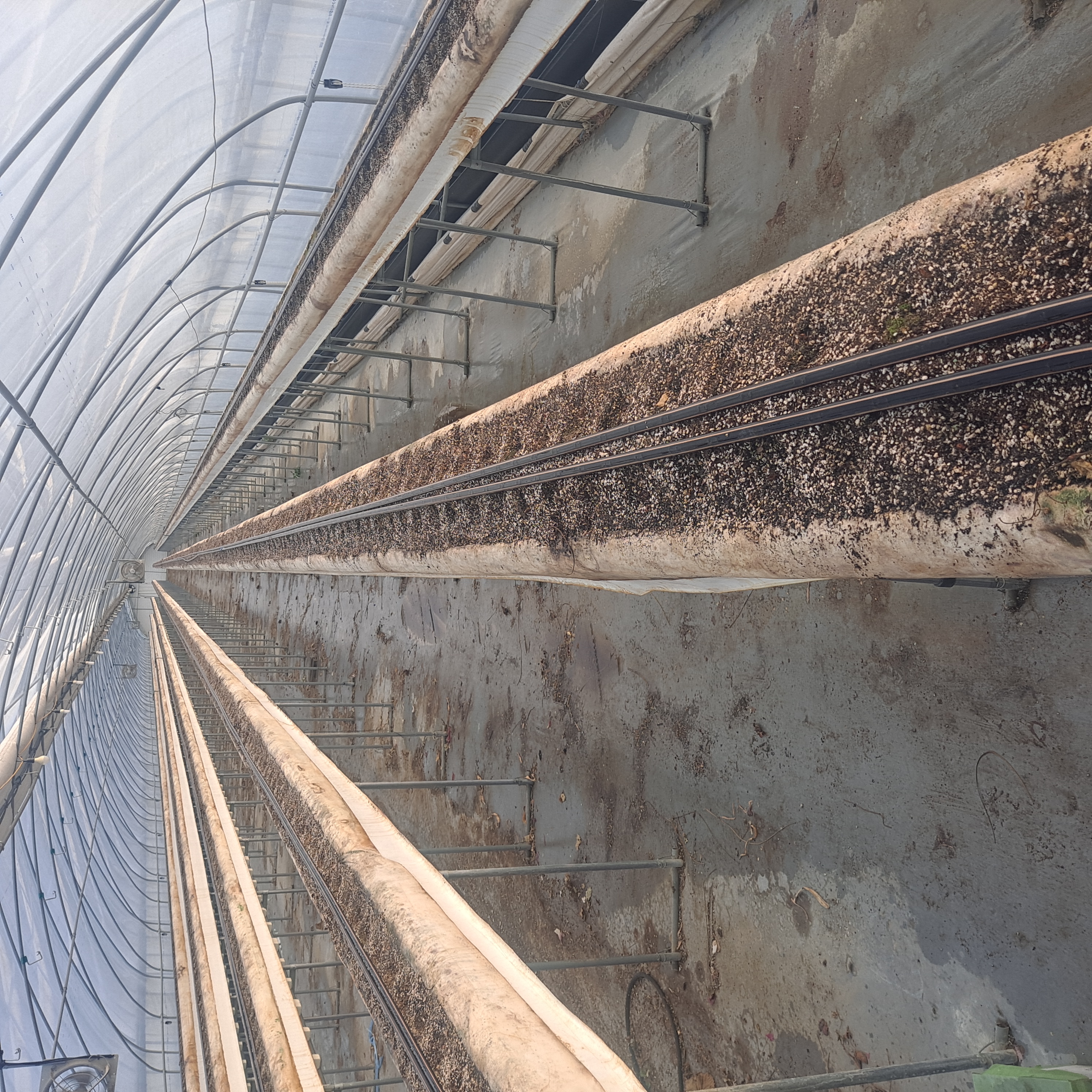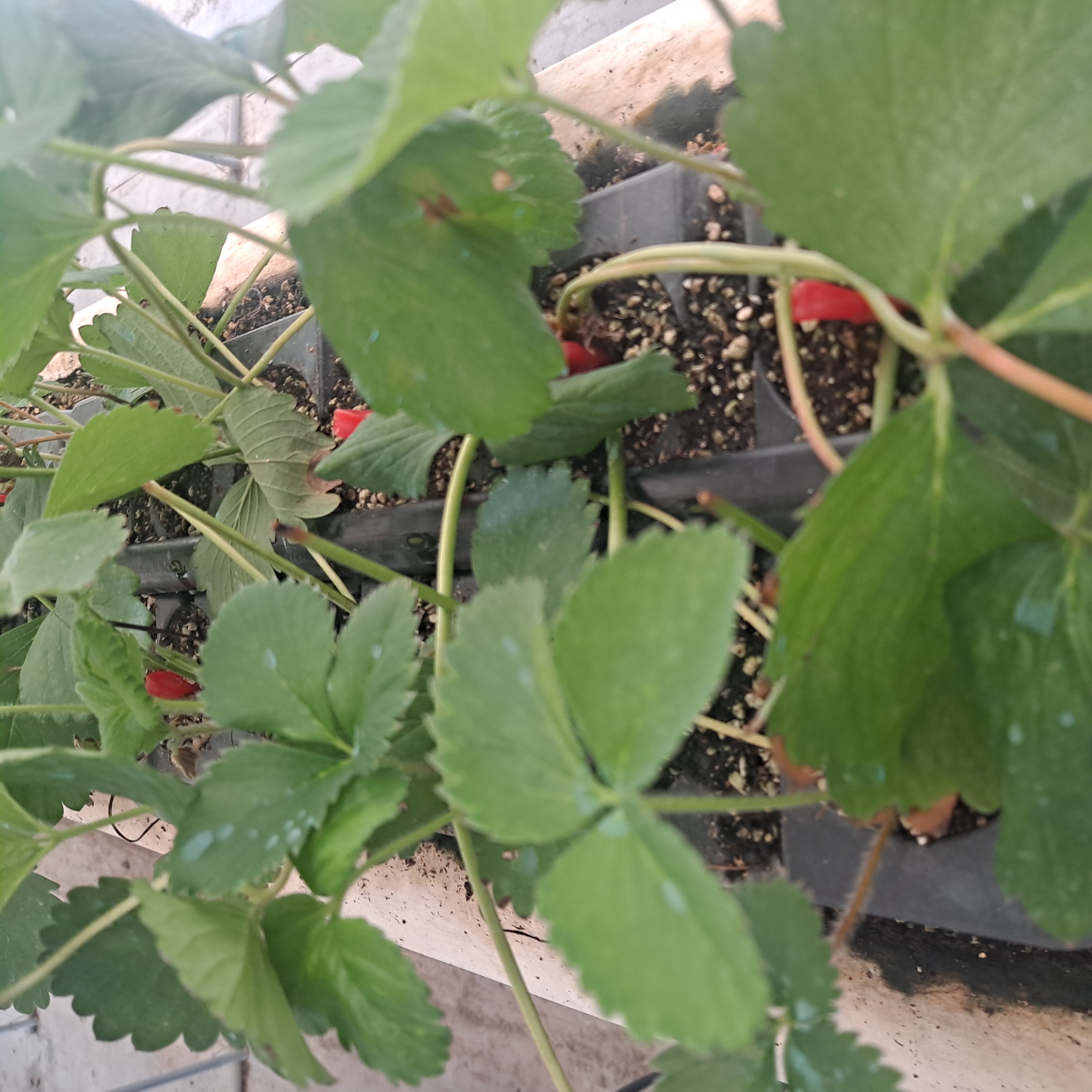 딸기 육묘잎 적엽중... 페로산으로 배드소독. 하우스온도 70도