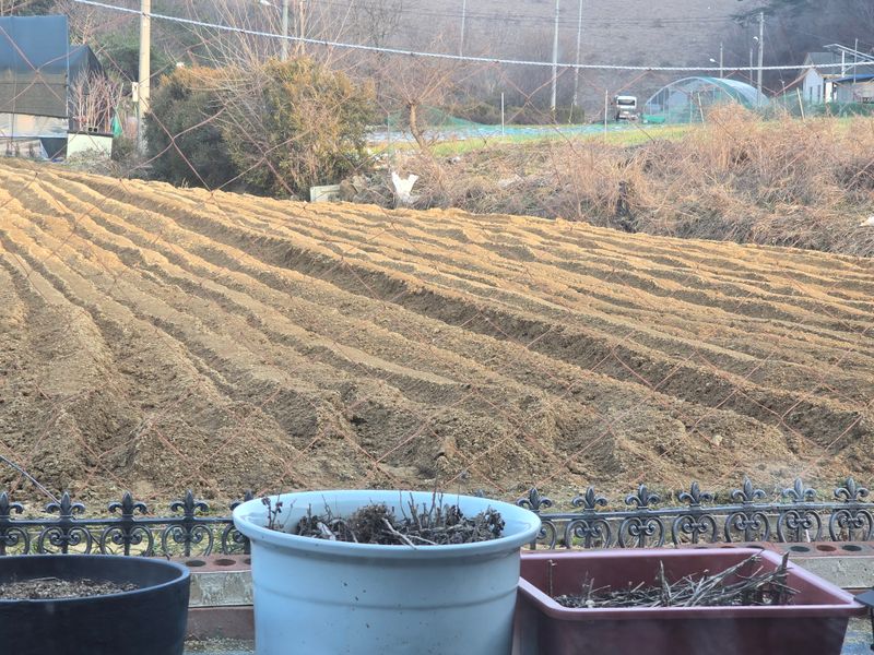 감자파종위한 거름 비료 토양살충제 붕소살포후 로타리작업 완로 및 제초작업 지하수 통수