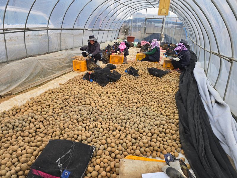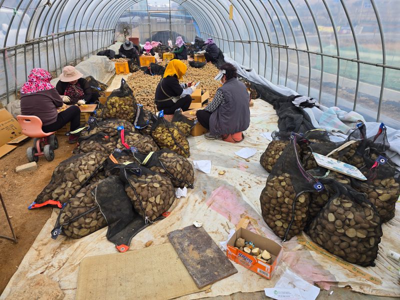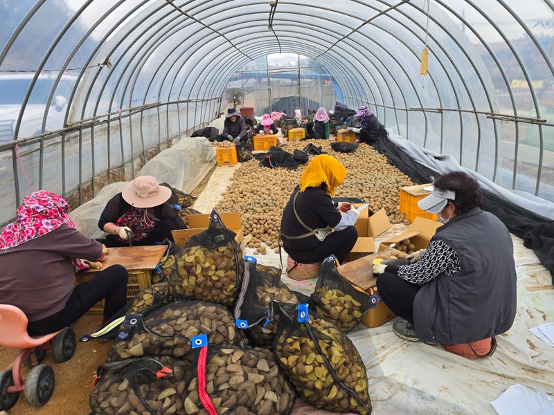 감자종자 절단작업 두백종자110박스 골든볼감자10박스 인부 여자5명 자가2명 합7명