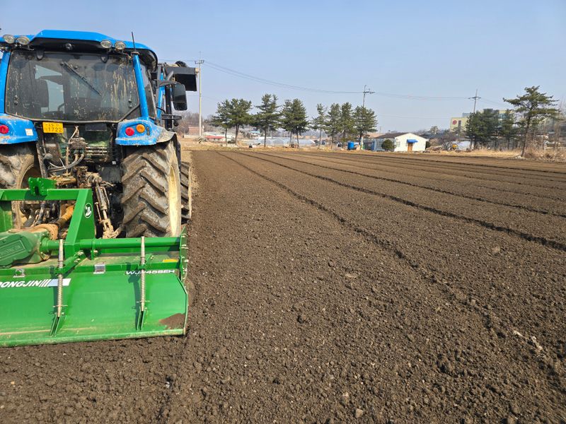 양파 예정지 경운 작업 장비 트랙터1대 자가인력한명 작업량 1500평
